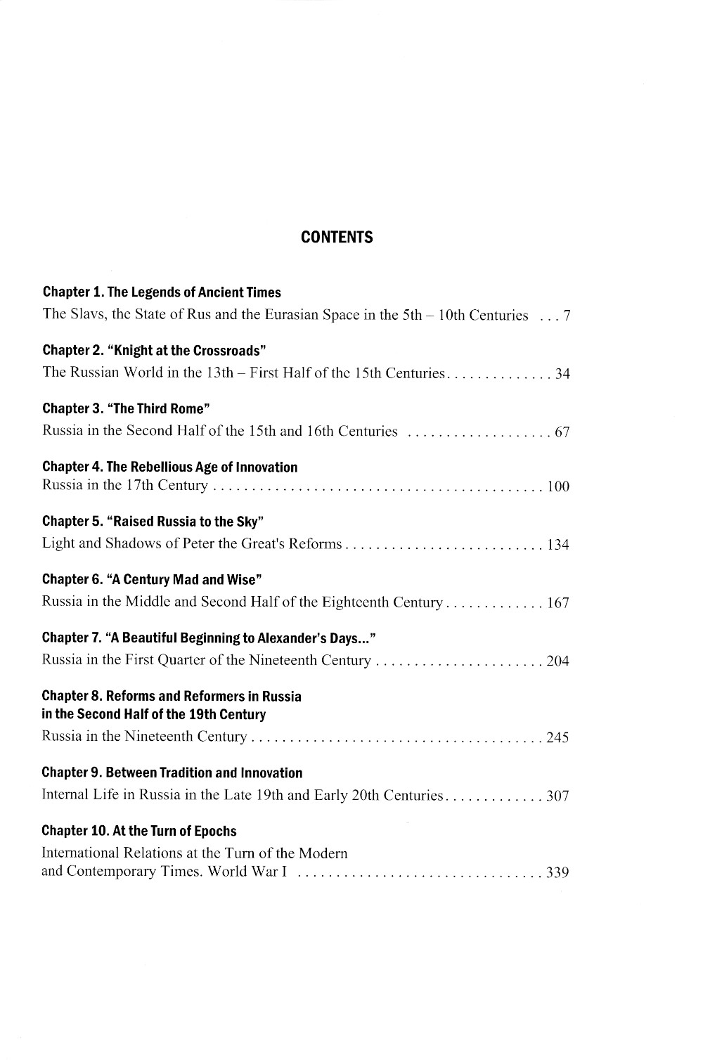 В учебнике представлена современная трактовка наиболее значимых событий российской истории в контексте важнейших фактов и процессов мировой истории с V в. н.э. до Первой мировой войны включительно. В рубрике «Историческая мозаика» даются выдержки из источников и историографии. Учебник снабжён картами, схемами и другим иллюстративным материалом. Для иностранных учащихся МГИМО МИД России, обучающихся на английском языке и изучающих историю России.