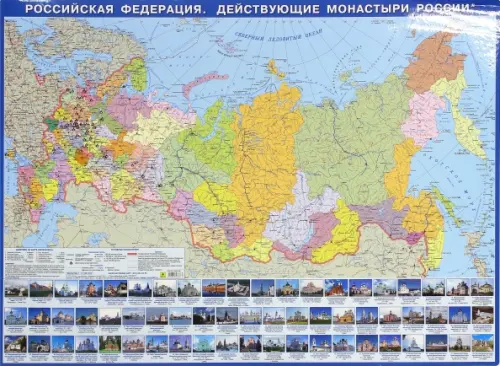 Российская Федерация. Действующие монастыри России. Тематическая настольная карта. Карта имеет двустороннюю ламинацию.