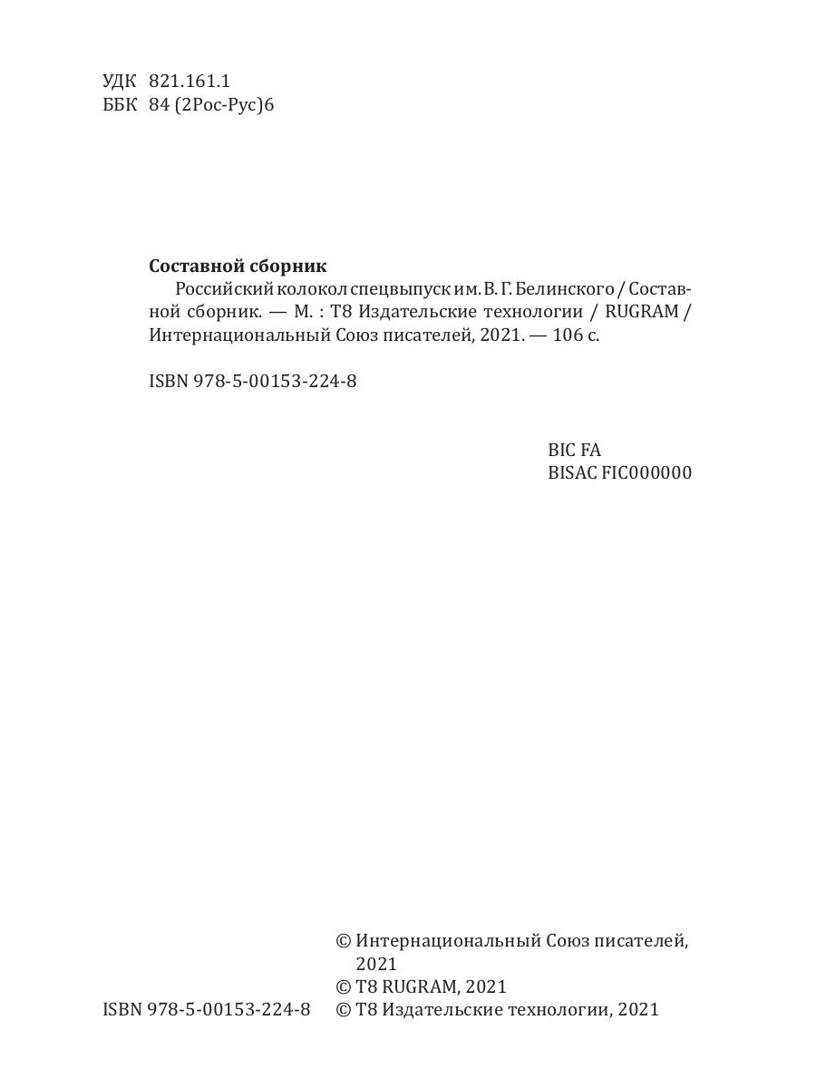 Аннотация: Российский колокол спецвыпуск альманаха им. В.Г. Белинского: Составной сборник