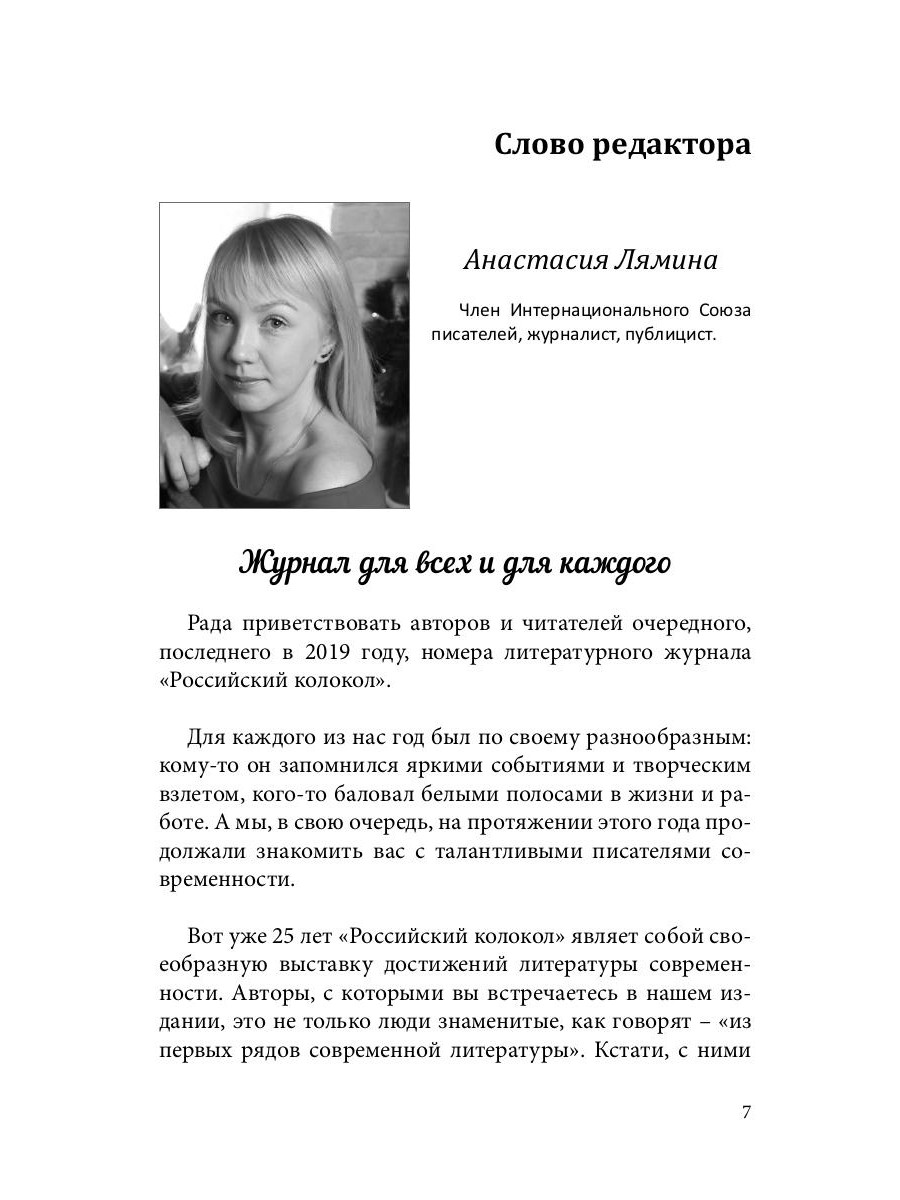 Рада приветствовать авторов и читателей очередного, последнего в 2019 году, номера литературного журнала «Российский колокол».