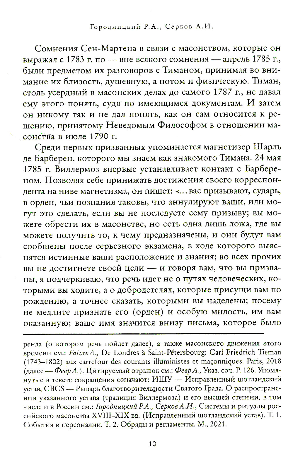 Вниманию читателей предлагается очередное издание серии "Масонство. Мартинизм. Герметизм", выпускаемой с целью просвещения читателей в области истории духовных движений, их философии и символизма. В монографии впервые с активным привлечением неопубликованных архивных материалов рассмотрен феномен российского мартинизма. Помимо общей канвы развития мартинизма в мире особое внимание было уделено ключевым моментам, связанным с Россией. Была предпринята попытка восстановить реальный круг российского окружения Л.К. Сен-Мартена. Особое внимание в книге уделено развитию Ордена мартинистов во главе с Папюсом в России, были выявлены не только имена руководителей мартинизма в России, но и очерчен круг реальных участников собраний мартинистов. В данном издании были рассмотрены также попытки легализации "украинской" ветви мартинизма и масонства во Франции, рассмотрен вопрос о преемственности организаций Р. Амбелена с "российской" филиацией Ордена мартинистов. Значительную часть книги составляют "Приложения" - публикация архивных документов, раскрывающих реальную деятельность мартинистов в России.| Издательство | Изд. Ганга |