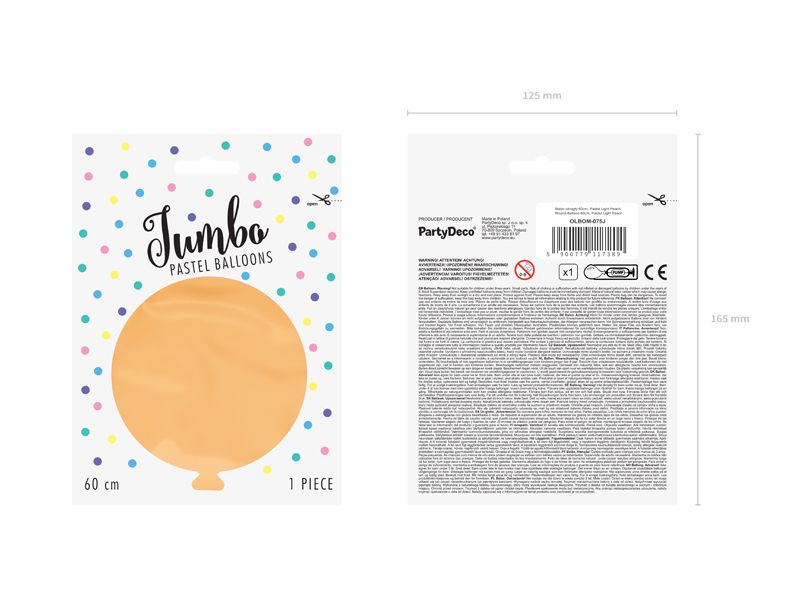 Balloon, diameter approx. 60 centimeters, Pastel Light Peach, the valve situated at the down.