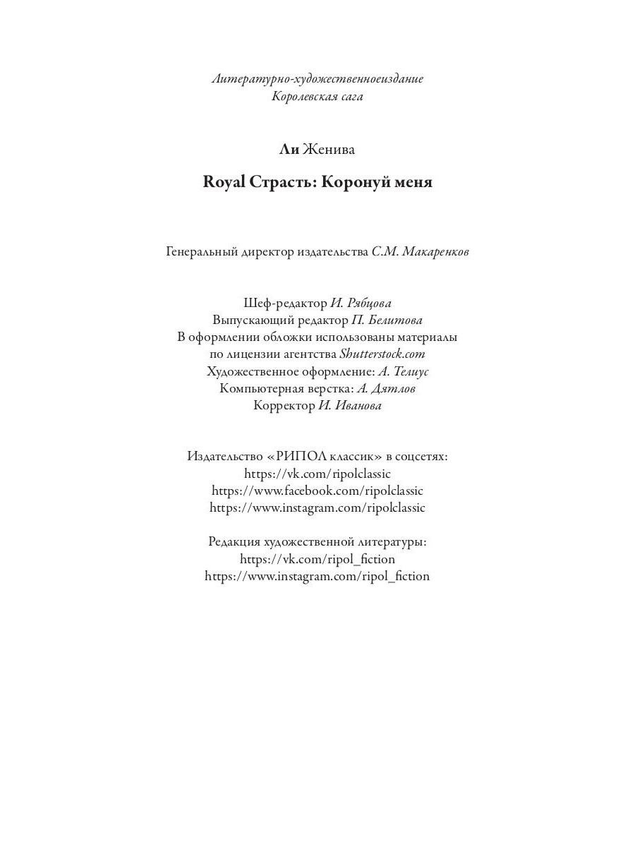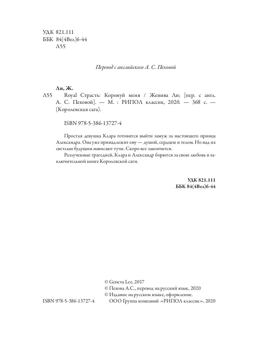Простая девушка Клара готовится выйти замуж за настоящего принца Александра. Она уже принадлежит ему - душой, сердцем и телом. Но над их светлым будущим нависают тучи. Скоро все закончится. Разлученные трагедией, Клара и Александр борются за свою любовь в заключительной книге Королевской саги.| Издательство | Рипол Классик |