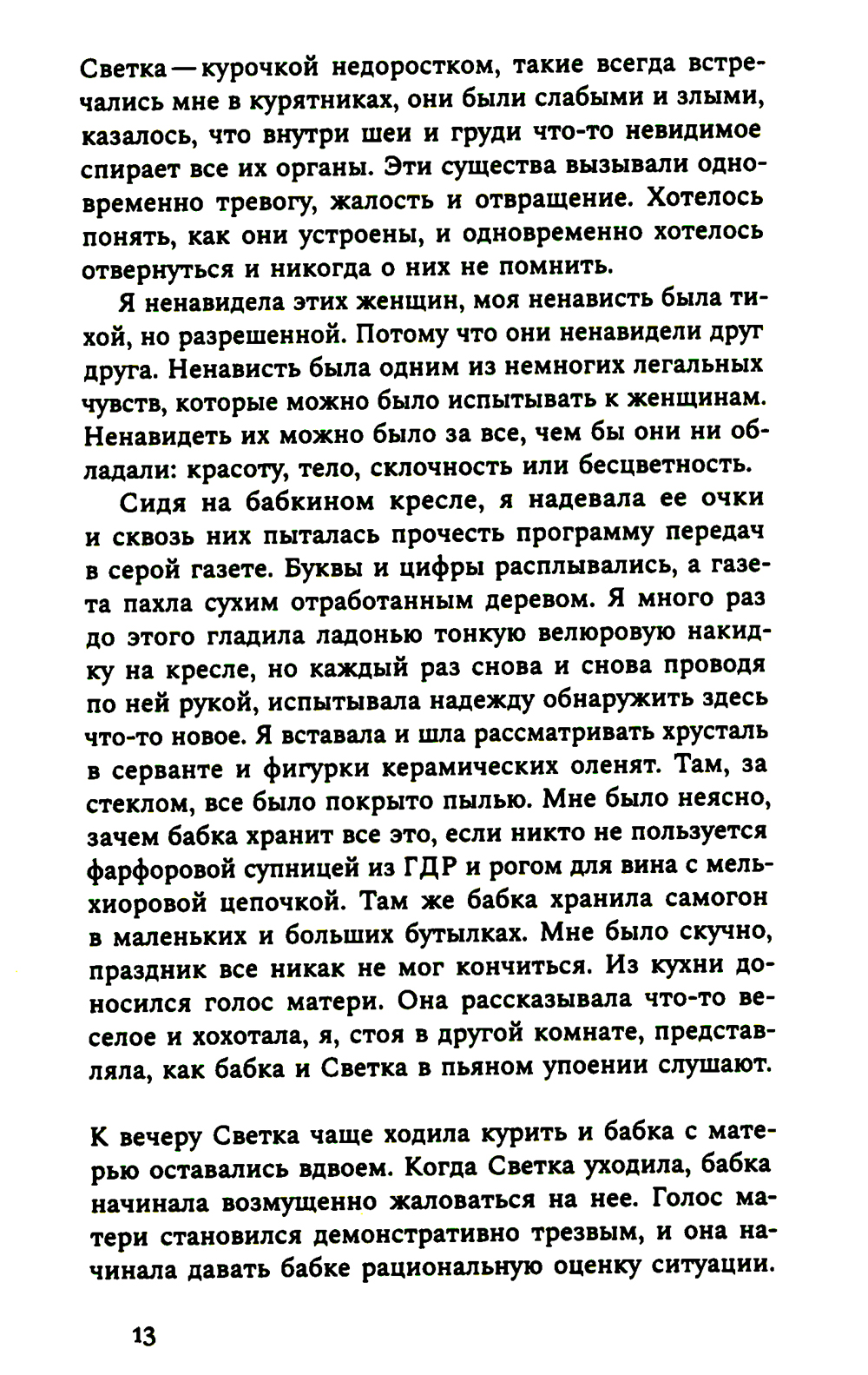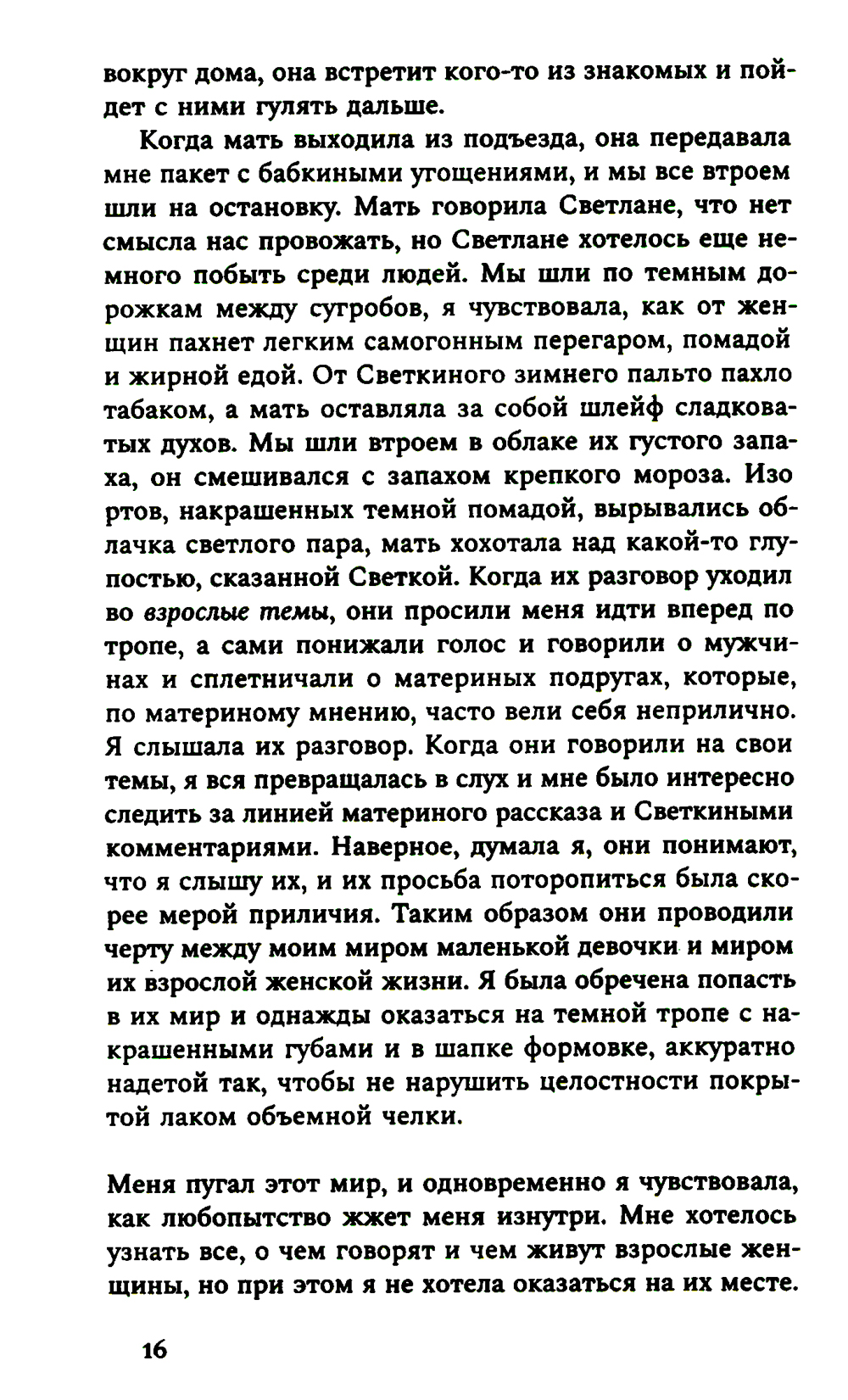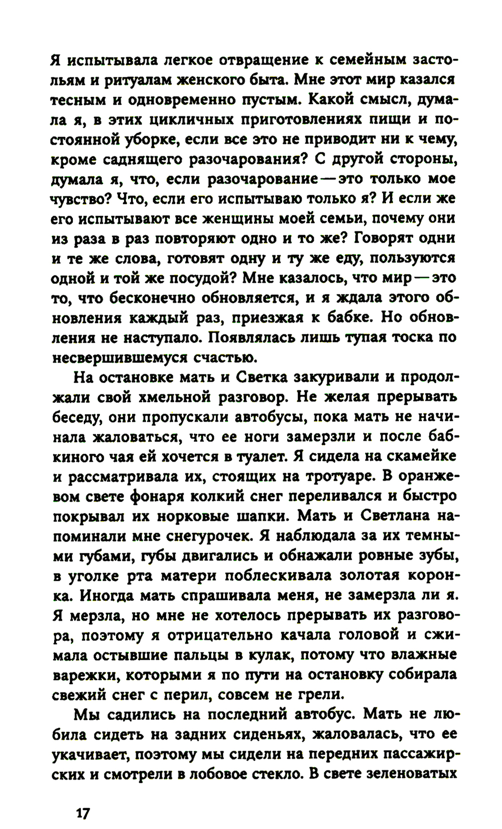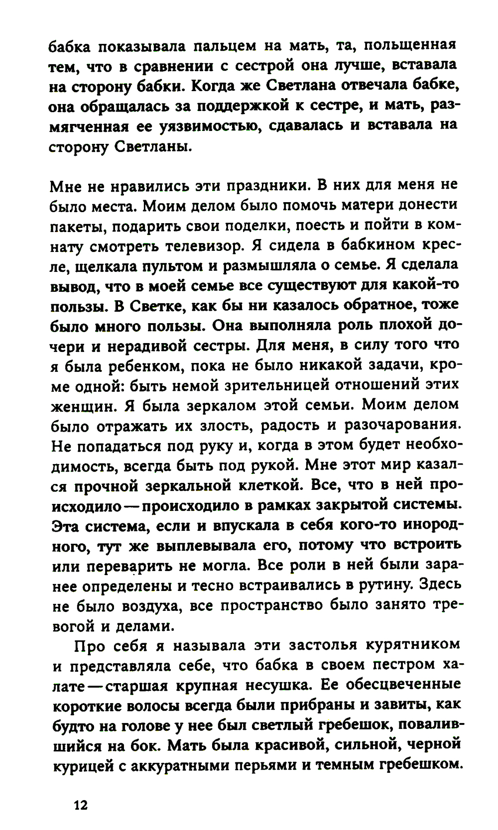 «Иногда я спрашиваю у себя, почему для письма мне нужна фигура извне: мать, отец, Светлана. Почему я не могу написать о себе? Потому что я - это основа отражающей поверхности зеркала. Металлическое напыление. Можно долго всматриваться в изнаночную сторону зеркала и ничего не увидеть, кроме мелкой поблескивающей пыли. Я отражаю реальность». Автофикшн-трилогию, начатую книгами «Рана» и «Степь», Оксана Васякина завершает романом, в котором пытается разгадать тайну короткой, почти невесомой жизни своей тети Светланы. Из небольших фрагментов памяти складывается сложный образ, в котором тяжелые отношения с матерью, бытовая неустроенность и равнодушие к собственной судьбе соседствуют с почти детской уязвимостью и чистотой. Но чем дальше героиня погружается в рассказ о Светлане, тем сильнее она осознает неразрывную связь с ней и тем больше узнает о себе и природе своего письма. Оксана Васякина - писательница, лауреатка премий «Лицей» (2019) и «НОС» (2021).| Издательство | Новое литературное обозрение |