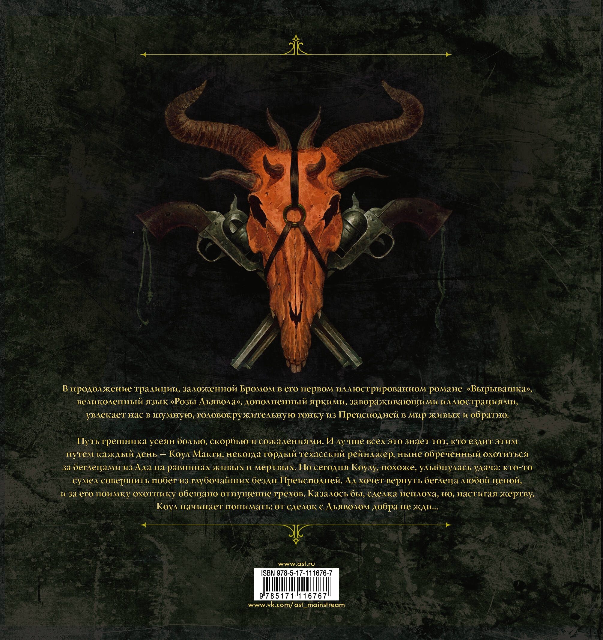 В продолжение традиции, заложенной Бромом в его первом иллюстрированном романе "Вырывашка", великолепный язык "Розы Дьявола", дополненный яркими, завораживающими иллюстрацимии, увлекает нас в шумную, головокружительную гонку из Преисподней в мир живых и обратно. Путь грешника усеян болью, скорбью и сожалениями. И лучше всех это знает тот, кто ездит этим путем каждый день - Коул Макги, некогда гордый техасский рейнджер, ныне обреченный охотиться за беглецами из Ада на равнинах живых и мертвых. Но сегодня Коулу, похоже, улыбнулась удача: кто-то сумел совершить побег из глубочайших бездн Преисподней. Ад хочет вернуть беглеца любой ценой, и за его поимку охотнику обещано отпущение грехов. Казалось бы, сделка неплоха, но, настигая жертву, Коул начинает понимать: от сделок с Дьяволом добра не жди...| Издательство | ИЗДАТЕЛЬСТВО "АСТ" |