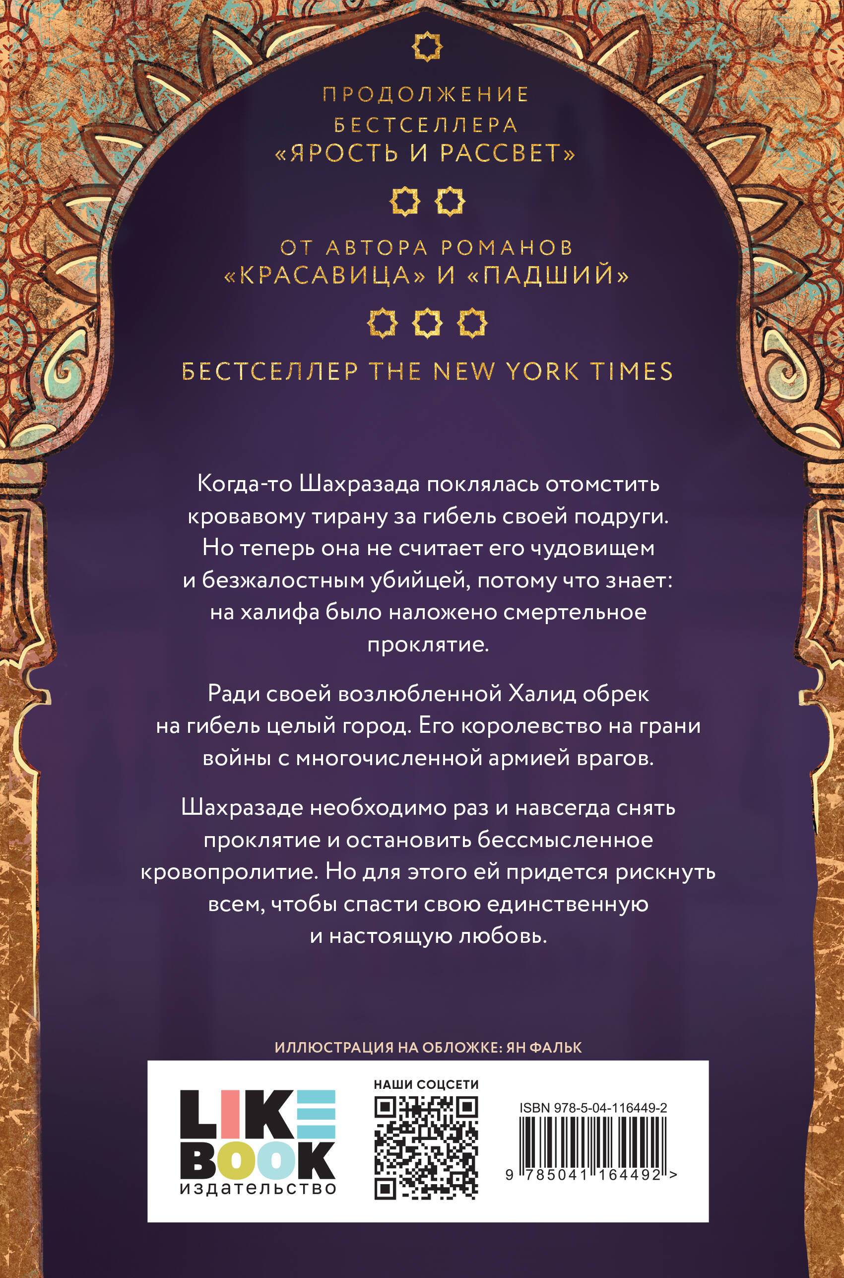 Долгожданное продолжение романа «Ярость и рассвет». Эпическая история любви, вдохновленная книгой «1001 и 1 ночи». Бестселлер The New York Times. «100 лучших фэнтези романов всех времен» по версии журнала TIME. Когда-то Шахразада поклялась отомстить кровавому тирану за гибель своей подруги. Но теперь она не считает его чудовищем и безжалостным убийцей, потому что знает: на халифа было наложено смертельное проклятие. Ради своей возлюбленной Халид обрек на гибель целый город. Его королевство на грани войны с многочисленной армией врагов. Шахразаде необходимо раз и навсегда снять проклятие и остановить бессмысленное кровопролитие. Но для этого ей придется рискнуть всем, чтобы спасти свою единственную и настоящую любовь. Об авторе Рене Ахдие - современная американская писательница корейского происхождения. Она окончила Университет Северной Каролины, где изучала литературу. В свободное время Рене любит танцевать и коллекционировать новые туфли. Она обожает пробовать новые виды карри, помогать животным и играть в баскетбол. Рене живет в Северной Каролине вместе с мужем и любимым псом. Успех пришел к Рене Ахдие после публикации ее романа «Ярость и рассвет», который был переведен на 18 языков мира.| Издательство | ООО "Издательство "Эксмо" |