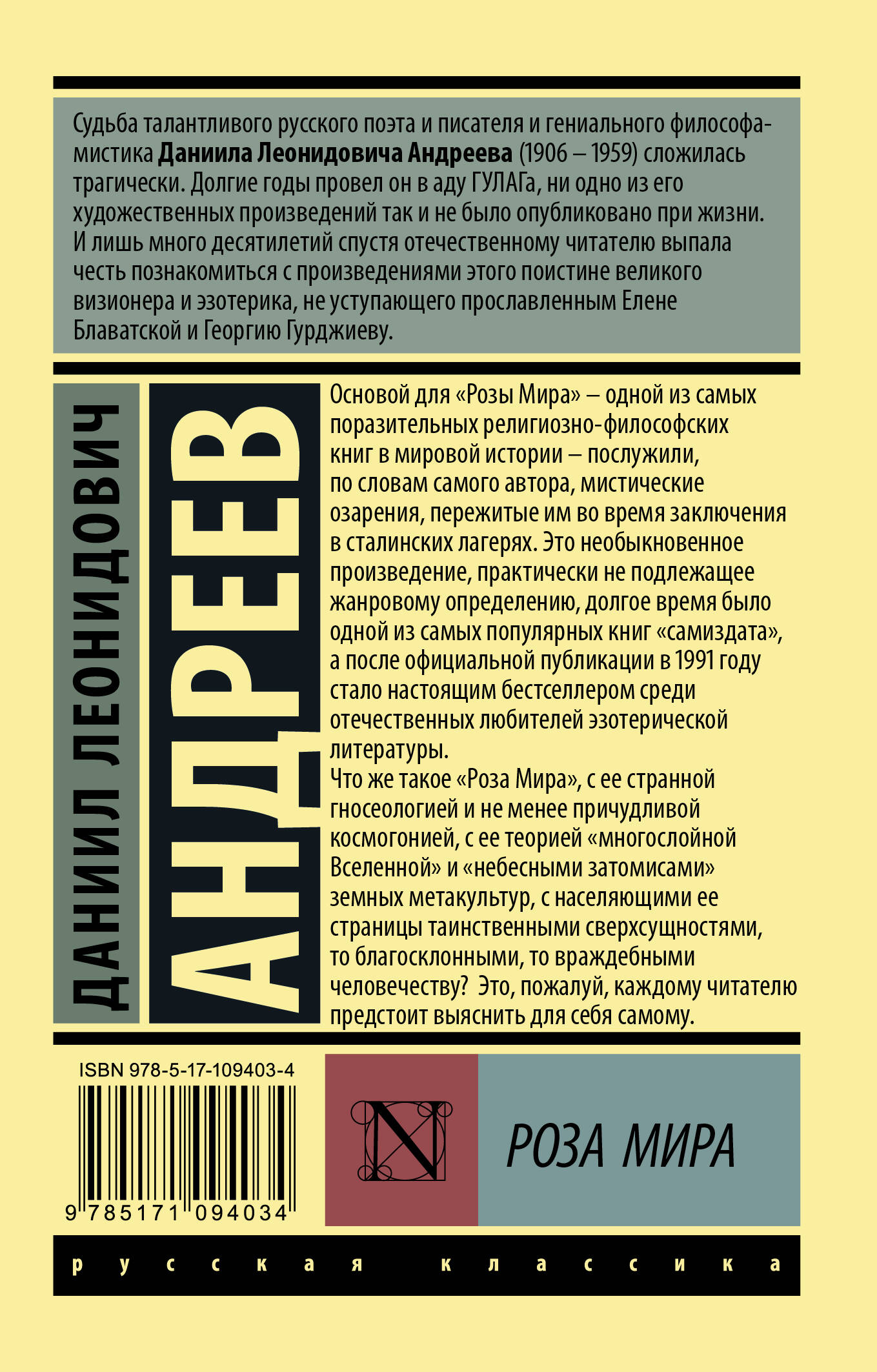 Основой для "Розы Мира" - одной из самых поразительных религиозно-философских книг в мировой истории - послужили, по словам самого автора, мистические озарения, пережитые им во время заключения в сталинских лагерях. Это необыкновенное произведение, практически не подлежащее жанровому определению, долгое время было одной из самых популярных книг "самиздата", а после официальной публикации в 1991 году стало настоящим бестселлером среди отечественных любителей эзотерической литературы. Что же такое "Роза Мира", с ее странной гносеологией и не менее причудливой космогонией, с ее теорией "многослойной Вселенной" и "небесными затомисами" земных метакультур, с населяющими ее страницы таинственными сверхсущностями, то благосклонными, то враждебными человечеству? Это, пожалуй, каждому читателю предстоит выяснить для себя самому.| Издательство | Издательство "АСТ" |