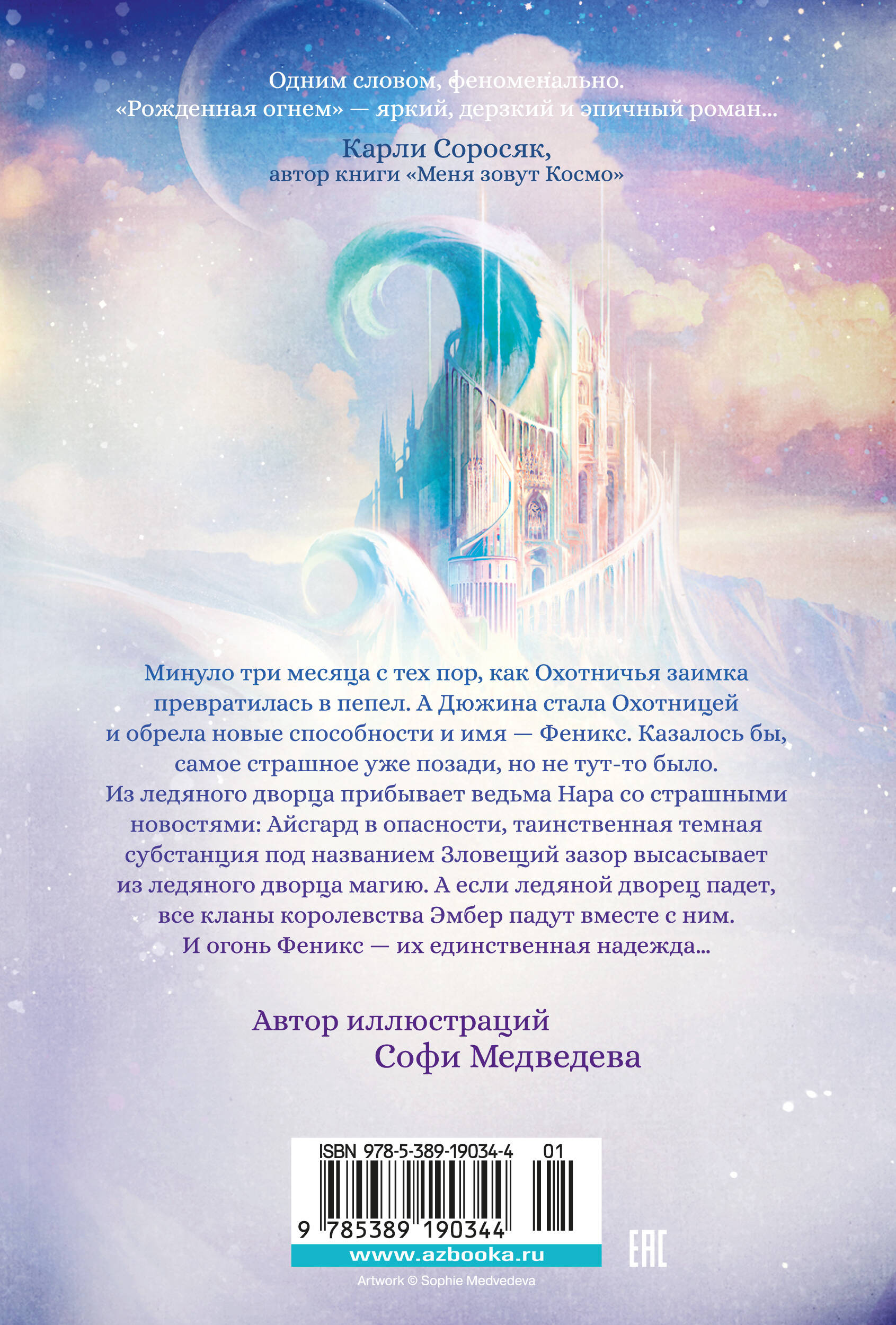 Минуло три месяца с тех пор, как Охотничья заимка превратилась в пепел. А Дюжина стала Охотницей и обрела новые способности и имя - Феникс. Казалось бы, самое страшное уже позади, но не тут-то было. Из ледяного дворца прибывает ведьма Нара со страшными новостями: Айсгард в опасности, таинственная темная субстанция под названием Зловещий зазор высасывает из ледяного дворца магию. А если ледяной дворец падет, все кланы королевства Эмбер падут вместе с ним. И огонь Феникс - их единственная надежда… Отважная девочка вместе с верными друзьями - Пятаком, Шестым и Семеркой - отправляется в путь, чтобы сразиться с настоящей тьмой. Феникс предстоит во что бы то ни стало научиться контролировать свою силу и понять, как противостоять Мороку, преследующему ее в кошмарах… Феникс готова сделать все, от нее зависящее, чтобы спасти Эмбер от смертельной опасности. Только как быть, если цена спасения окажется слишком высока? Второй роман захватывающей трилогии Ашлин Фаулер впервые на русском!| Издательство | Азбука-Аттикус Издат.группа ООО |