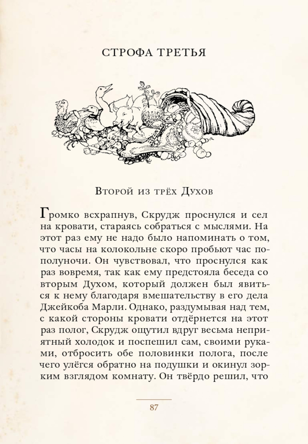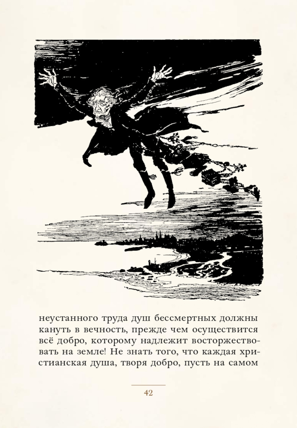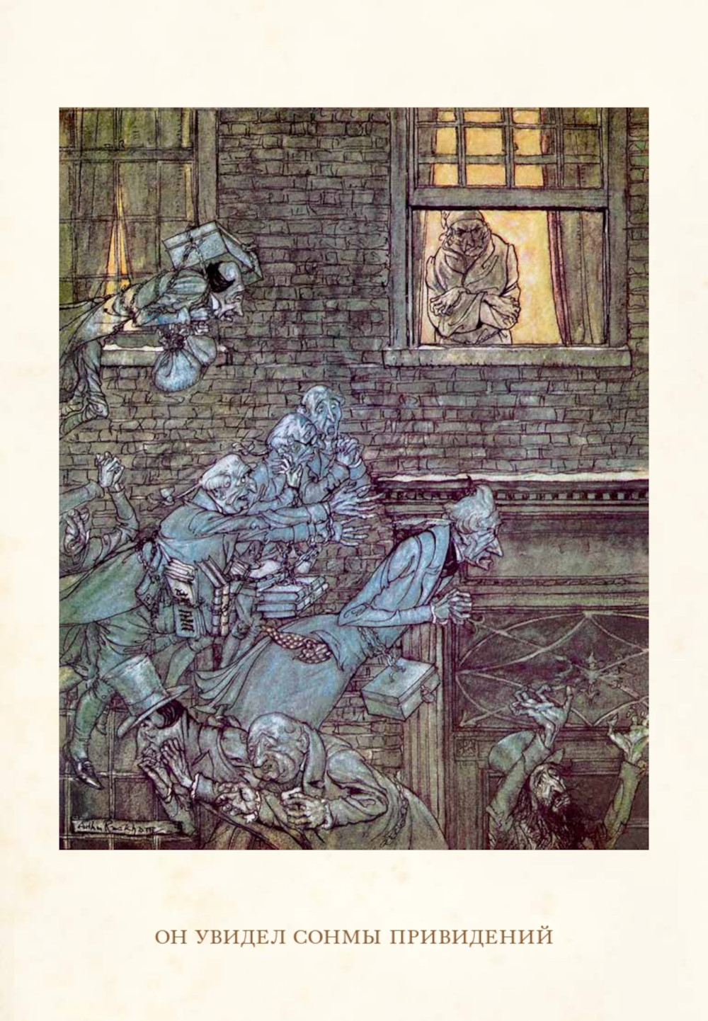 Но однажды, в канун Рождества, сердце Скруджа забилось с невиданной для него силой: к нему в гости зашёл его старый компаньон. Компаньон, который давно умер… Дух этой мистической истории передают волшебные рисунки Артура Рэкхема.