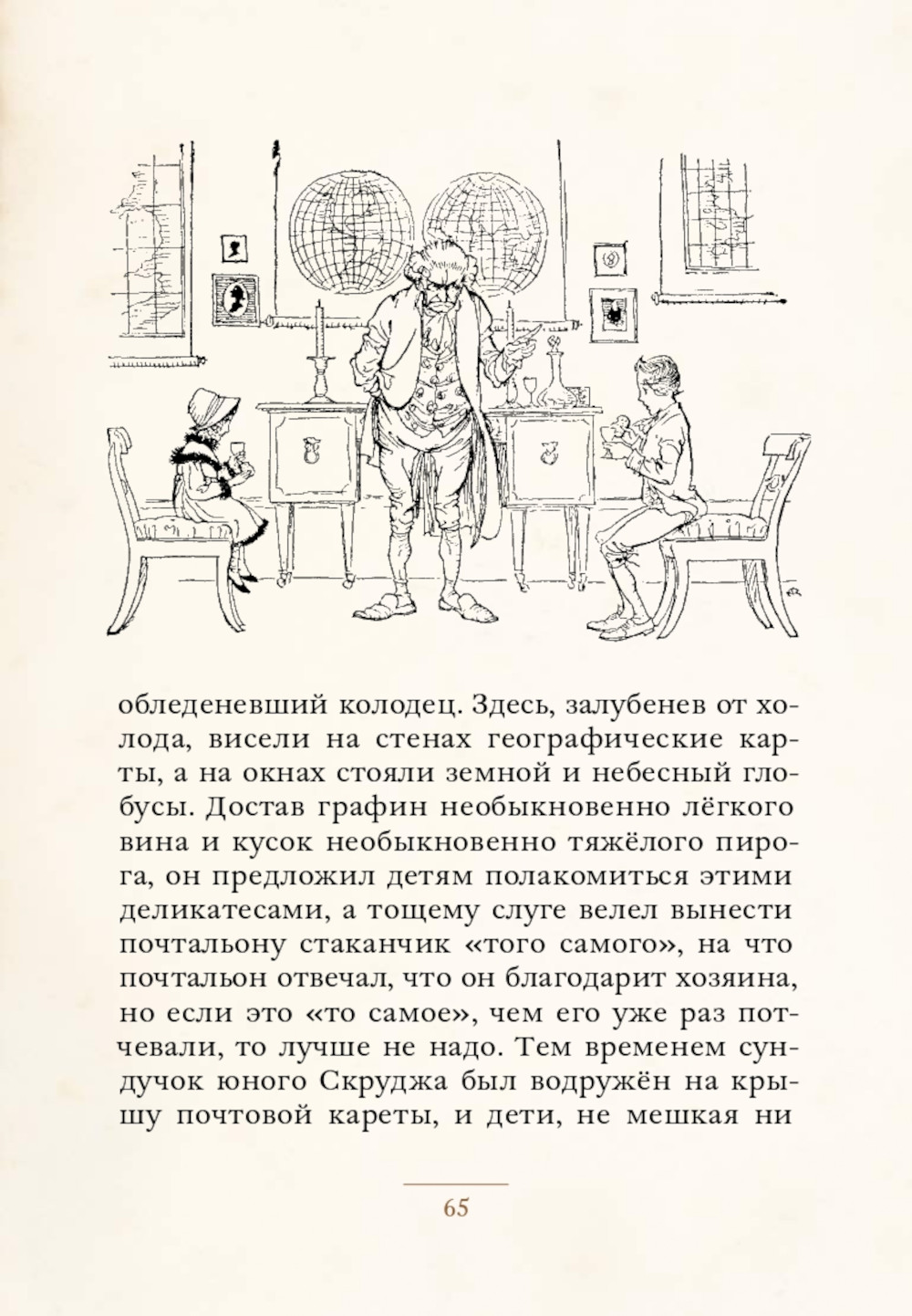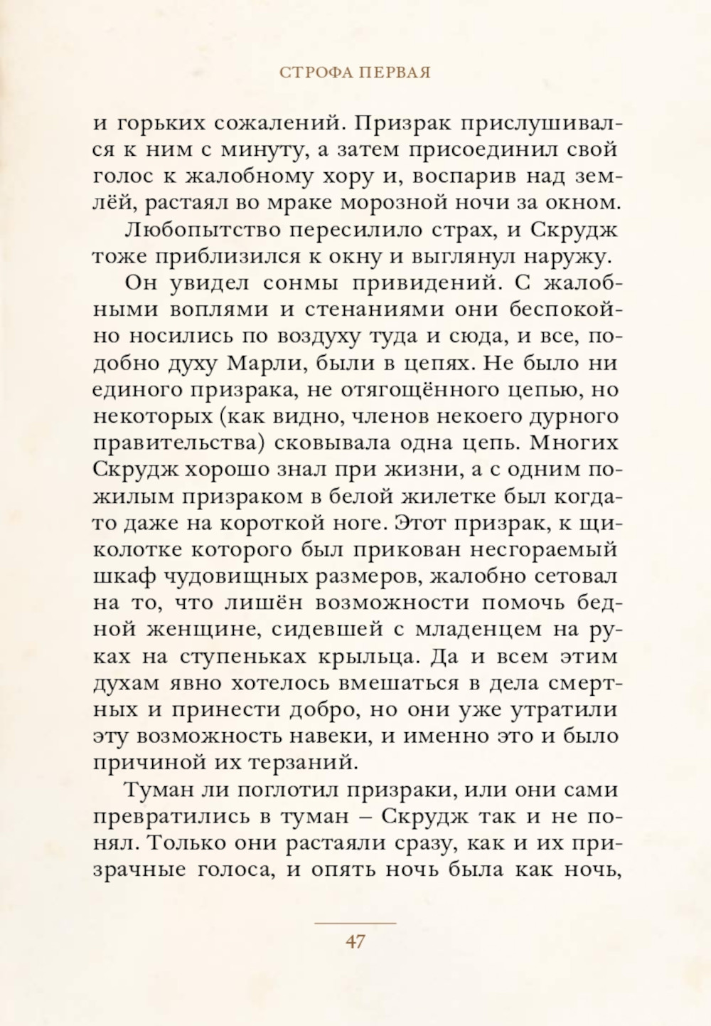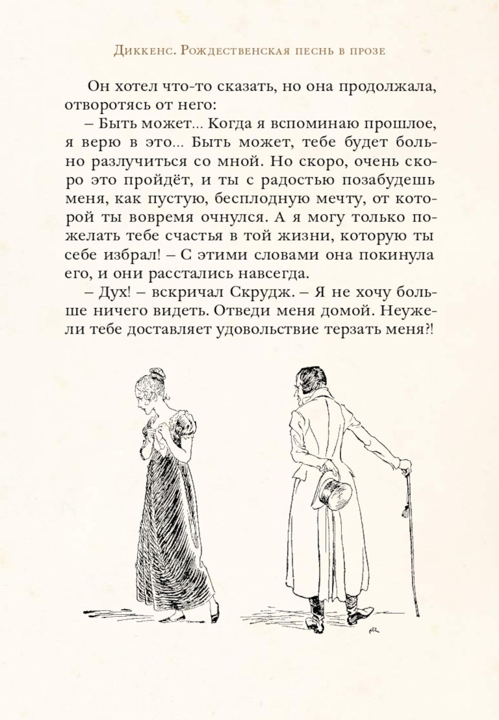Но однажды, в канун Рождества, сердце Скруджа забилось с невиданной для него силой: к нему в гости зашёл его старый компаньон. Компаньон, который давно умер… Дух этой мистической истории передают волшебные рисунки Артура Рэкхема.