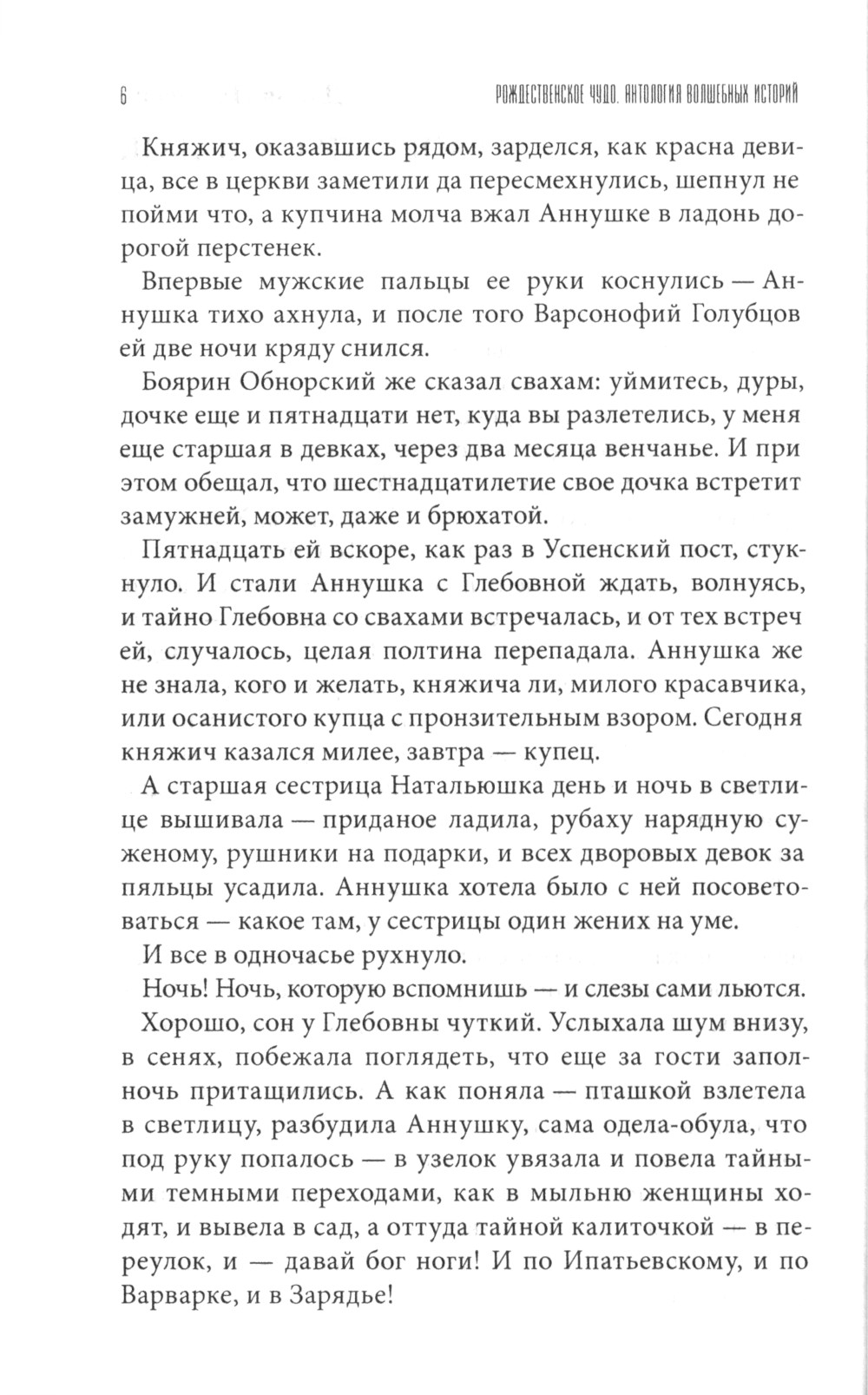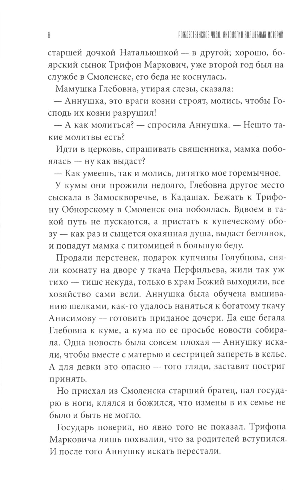 Все мы ждём чуда! Особенно - под Новый год и Рождество. Сборник, который вы держите в руках, полон волшебных свершений. И пусть некоторые события в рассказах и невесёлые, а какие-то - даже по-гоголевски мрачные, каждый из них заканчивается настоящим Чудом! А ещё - сборник полон чарующей атмосферы прошлого. Действие всех рассказов происходит в России XVII-XIX веков. Ведь без прошлого не будет и будущего.| Издательство | Снежный Ком М |