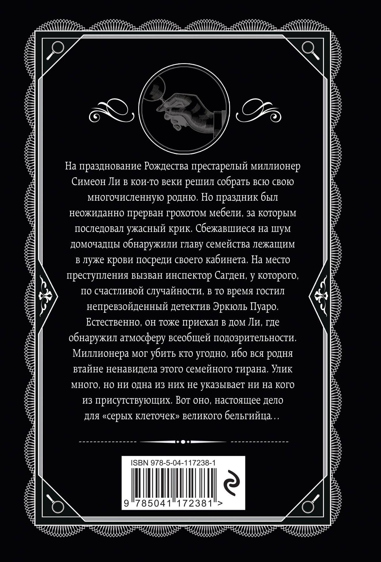 На празднование Рождества престарелый миллионер Симеон Ли в кои-то веки решил собрать всю свою многочисленную родню. Но праздник был неожиданно прерван грохотом мебели, за которым последовал ужасный крик. Сбежавшиеся на шум домочадцы обнаружили главу семейства лежащим в луже крови посреди своего кабинета. На место преступления вызван инспектор Сагден, у которого по счастливой случайности в то время гостил непревзойденный детектив Эркюль Пуаро. Естественно, он тоже приехал в дом Ли, где обнаружил атмосферу всеобщей подозрительности. Миллионера мог убить кто угодно - ибо вся родня втайне ненавидела этого семейного тирана. Улик много, но ни одна из них не указывает ни на кого из присутствующих. Вот оно, настоящее дело для «серых клеточек» великого бельгийца…