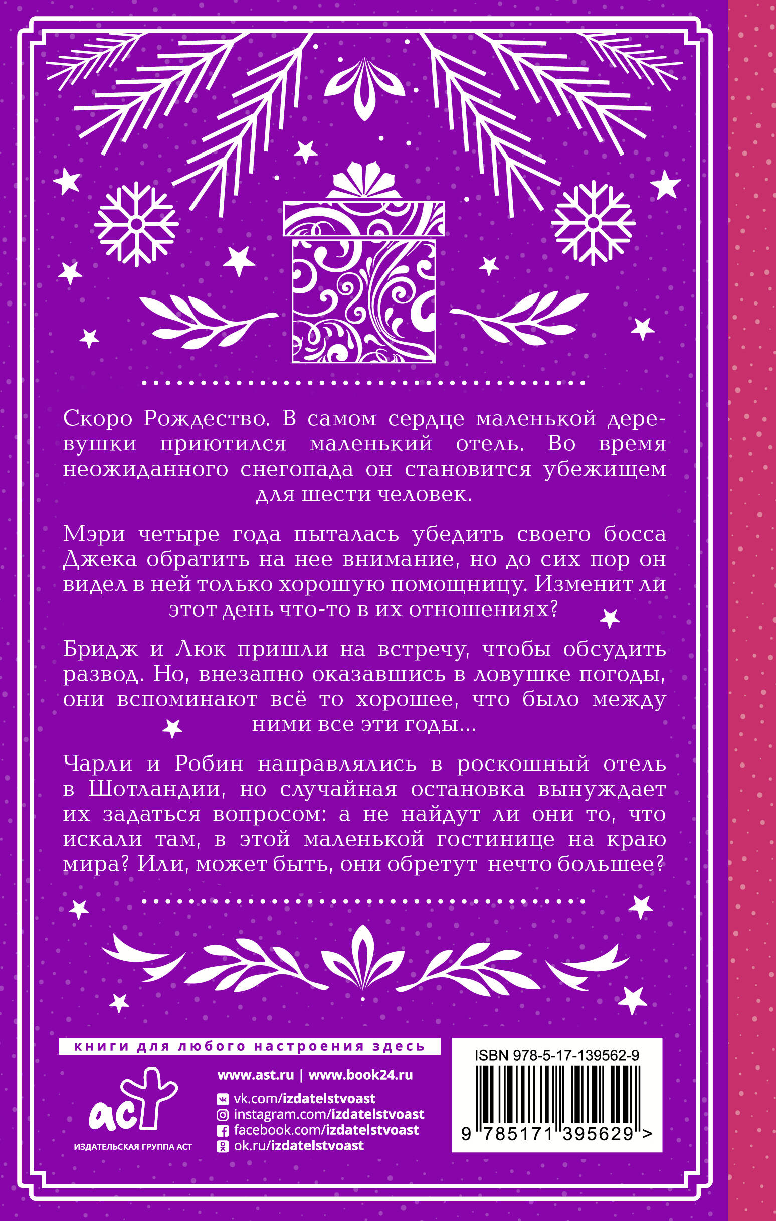 Скоро Рождество. В самом сердце маленькой деревушки приютился маленький отель. Во время неожиданного снегопада он становится убежищем для шести человек. Мэри четыре года пыталась убедить своего босса Джека обратить на нее внимание, но до сих пор он видел в ней только хорошую помощницу. Изменит ли этот день что-то в их отношениях? Бридж и Люк пришли на встречу, чтобы обсудить развод. Но, внезапно оказавшись в ловушке погоды, они вспоминают всё то хорошее, что было между ними все эти годы… Чарли и Робин направлялись в роскошный отель в Шотландии, но случайная остановка вынуждает их задаться вопросом: а не найдут ли они то, что искали там, в этой маленькой гостинице на краю мира? Или, может быть, они обретут нечто большее?| Издательство | ИЗДАТЕЛЬСТВО "АСТ" |