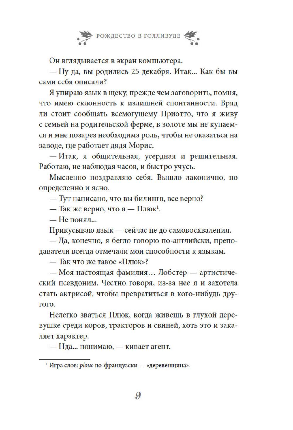 СОДЕРЖИТ ИНФОРМАЦИЮ О НАРКОТИЧЕСКИХ ИЛИ ПСИХОТРОПНЫХ ВЕЩЕСТВАХ, УПОТРЕБЛЕНИЕ КОТОРЫХ ОПАСНО ДЛЯ ЗДОРОВЬЯ. ИХ НЕЗАКОННЫЙ ОБОРОТ ВЛЕЧЕТ УГОЛОВНУЮ ОТВЕТСТВЕННОСТЬ. У Элли Лобстер есть заветная мечта: стать известной актрисой и покорить Голливуд. Но разве это так просто, когда живешь в крохотной деревушке во Франции и даже твоя настоящая фамилия переводится как «деревенщина»? И вдруг - о Рождественское чудо - Элли предлагают самую необычную работу: занять место кинозвезды, которой очень уж хочется скрыться на время праздников от папарацци. И не где-нибудь... а в самом Лос-Анджелесе! Надев подходящий парик, линзы и вооружившись гардеробом настоящей голливудской актрисы, Элли поселяется в ее доме, чтобы успешно отыграть роль, пару раз попавшись в кадр уличных фотографов... Но как с этим всем связано путешествие по Америке в доме на колесах, гадание на картах Таро, перестрелка в церкви и всепоглощающая, истинная любовь? Да уж, это Рождество Элли никогда не забыть!| Издательство | Азбука |