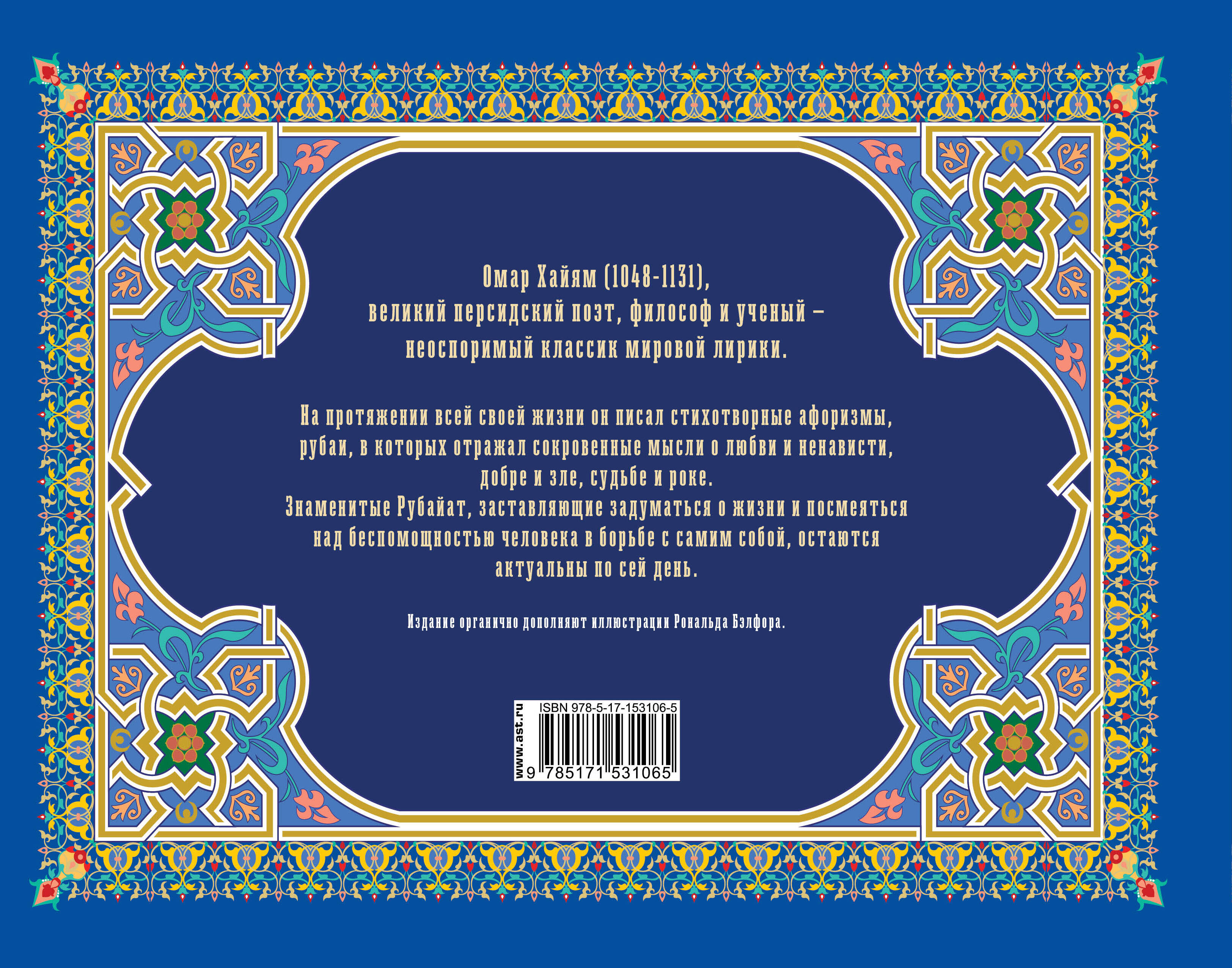 Омар Хайям (1048-1131), великий персидский поэт, философ и ученый - неоспоримый классик мировой лирики. На протяжении всей своей жизни он писал стихотворные афоризмы, рубаи, в которых отражал сокровенные мысли о любви и ненависти, добре и зле, судьбе и роке. знаменитые Рубайат, заставляющие задуматься о жизни и посмеяться над беспомощностью человека в борьбе с самим собой, остаются актуальны по сей день. Издание органично дополняют иллюстрации Рональда Бэлфора.| Издательство | ИЗДАТЕЛЬСТВО "АСТ" |