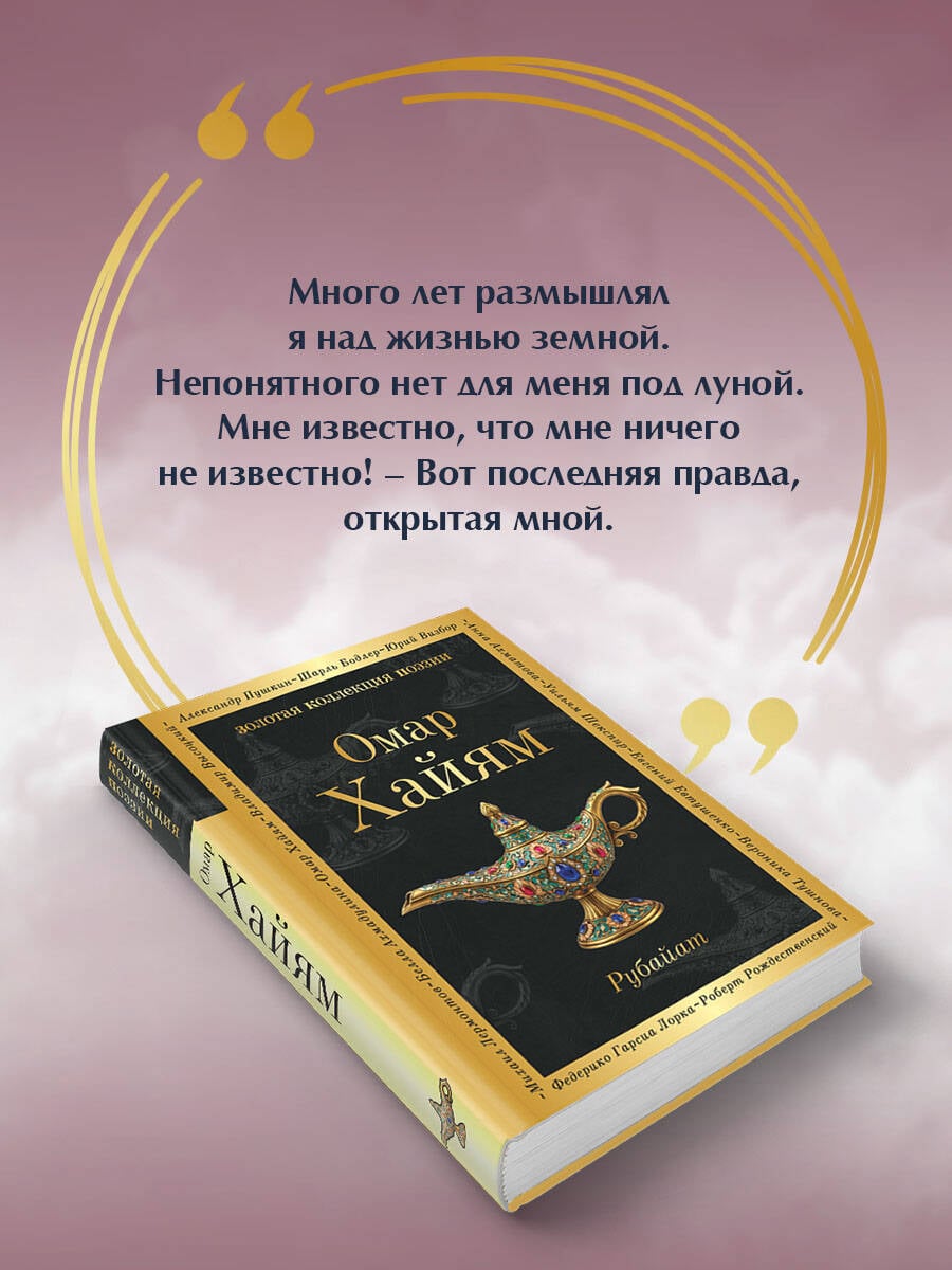 Омар Хайям (1048-1131) - выдающийся персидский астроном, математик, физик и философ. Он создал рубаи - короткие четверостишия, воспевающие мудрость, любовь, красоту и радости жизни. Его творчество соединяет науку и поэзию, философию и эмоции, оставляя наследие, которое вдохновляет поколения, открывает сердце миру и учит видеть красоту в каждом мгновении жизни.| Издательство | ООО "Издательство "Эксмо" |