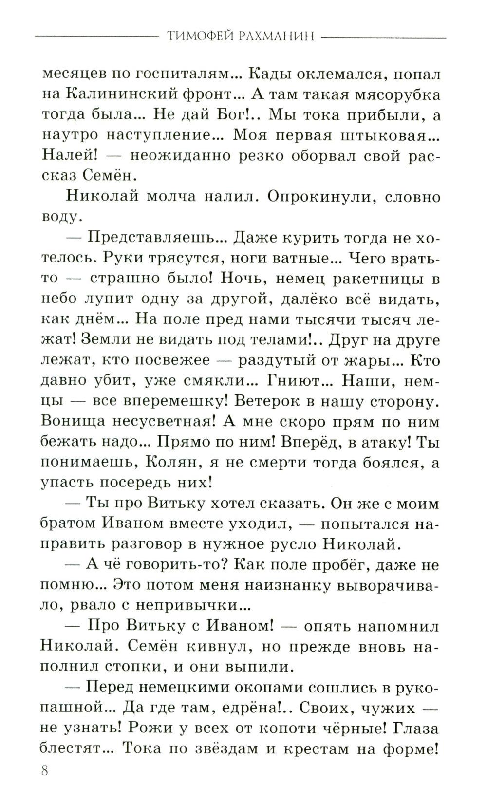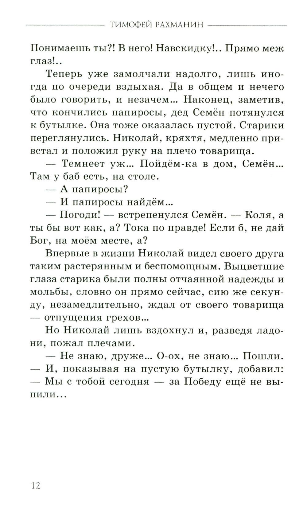 Тимофей Рахманин написал сборник рассказов, заслуженно вошедших в золотой фонд российской патриотической прозы. Это рассказы про все времена и на все времена. Пронзительные и тонкие, они рассказывают о людях - простых русских людях, попавших в трагические ситуации разных войн, от времён княжеских до Великой Отечественной и СВО. Эти истории заставляют смеяться и плакать, но они точно не оставят никого равнодушными. Об авторе: прозаик, краевед, член Союза писателей России. Лауреат Всероссийской литературной премии имени Н. С. Лескова «Очарованный странник» (2019 г.), дипломант Славянского Форума искусств «Золотой Витязь» (2020 г.), член координационного совета Благотворительной унитарной некоммерческой организации «Фонд святого благоверного князя Довмонта Псковского». Председатель общественного движения «Наследие Довмонта».| Издательство | Крылов |
