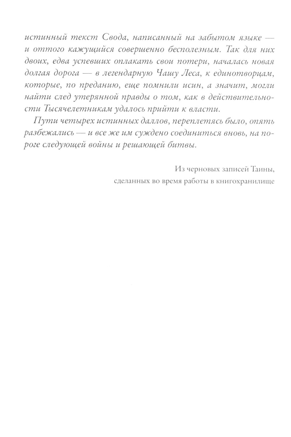 Самый сложный путь - тот, что уводит все дальше и дальше от дома. И очень просто заблудиться, когда шагаешь в темноте, и слишком легко упасть, если вдруг некому вовремя подать тебе руку. Но, вопреки усталости, потерям и страху, герои продолжают идти. Мику и Рут в поисках истины предстоит отправиться к легендарной Чаше Леса, воочию увидеть, как древние сказания оборачиваются былью, и понять наконец, что связывает их двоих с Яха-Олой. Каю же с Дариной выпадет оказаться в Острых Хребтах, у величественного Высокого Храма, и обнаружить там удивительную узницу, которая и сама способна взять в страшный плен. Две немыслимо разные дороги разбегаются прочь. Но их роднит одно - решение сражаться за истину, которое оборвет паутину многовековой разрушительной лжи. Иллюстрации Юлии Биленко.| Издательство | Абрикобукс |