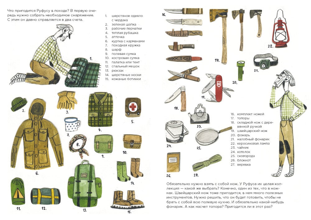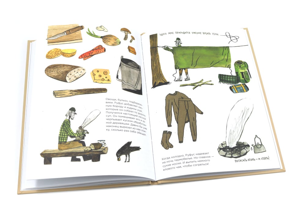 Руфус живет в городе, но его борода пахнет хвоей, дымом костра и ежевичным чаем. Каждую неделю он ждет не дождется выходных, чтобы отправиться на природу. Он точно знает, что нужно взять с собой в поход, и очень не любит тех, кто оставляет мусор в лесу. Хочешь узнать, что поможет тебе разжечь костер, если нет спичек, и как выбрать безопасное место для ночлега? Знаешь ли ты, что означает еловая веточка, оставленная на костровище? Руфус расскажет тебе о правилах поведения в лесу. И о вкуснейшем супе из лесной бороды и иудиных ушей.| Издательство | Белая ворона/ALBUS CORVUS |