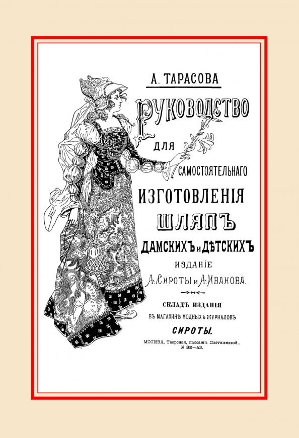 Репринт с издания. Москва 1899. С 44 рис. в тексте. Тарасова - преп. "Школы шляп" при О-ве распространения практических знаний между образованными женщинами. Книга изготовлена по технологии "печать по требованию". Тираж 30 экз.