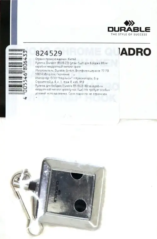 Квадратная рулетка для бейджей из хромированного металла. С укреплённым металлическим зажимом на обратной стороне.