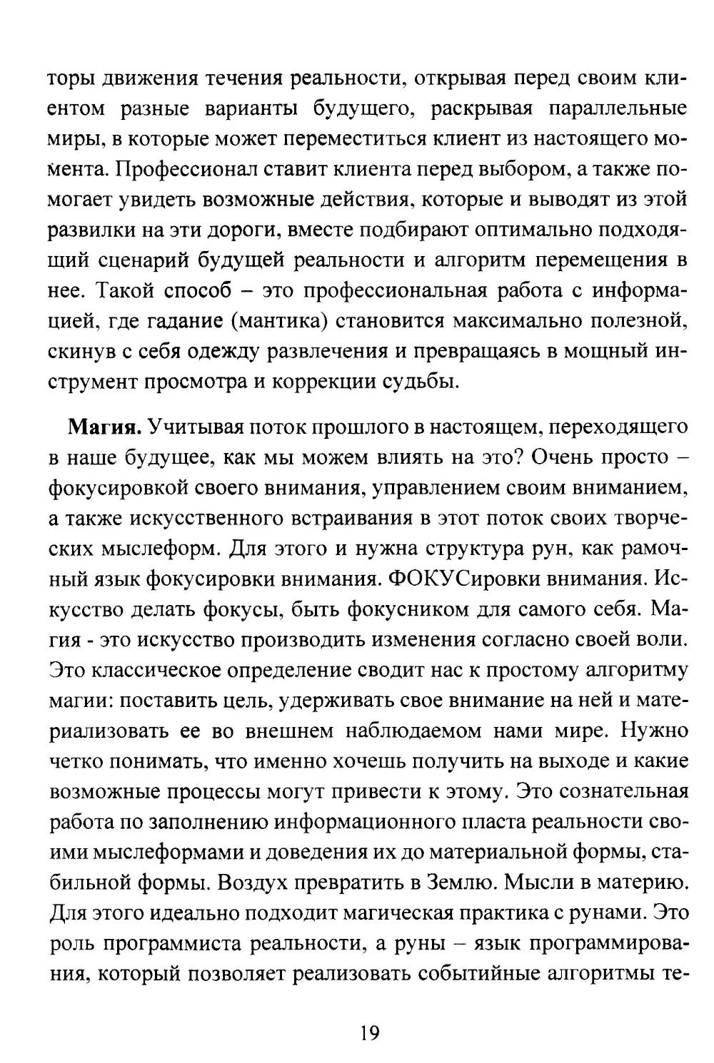 Это детальное руководство по рунической мантике от рунолога №1 в России (возможно и в мире). Здесь вы получите целый курс для освоения древнего искусства гадания на рунах, научившись получать ответы на любые вопросы с помощью мудрости рун. С помощью этой книги вы осознаете механизм рунической мантики, получите готовые детальные трактовки рун для практики, освоите технические аспекты гадания на рунах, научитесь вести процесс сбора, анализа и трактовки информации во время сеансов прорицания на рунах, получите набор лучших раскладов на разные сферы жизни, а также найдете здесь готовые трактовки к самым популярным вопросам с описанием значений каждой руны; узнаете, как раскрыть дар ясновидения и как работать с клиентами, помогая им получать ответы на жизненно важные вопросы.Юрий Исламов - практикующий маг и рунолог, тренер рунического искусства. Автор книг «Рунический Гримуар», «Руническая магия», «Рунические формулы», «Рунические ставы», «Турборуны», «Рунический Круг Силы» и другие, а также автор обучающих курсов по Рунам и Магии, в том числе автор единственного системного полноценного курса по рунам «Рунический Круг Силы», охватывающего все аспекты познания и применения силы рун.| Издательство | Атмосфера |