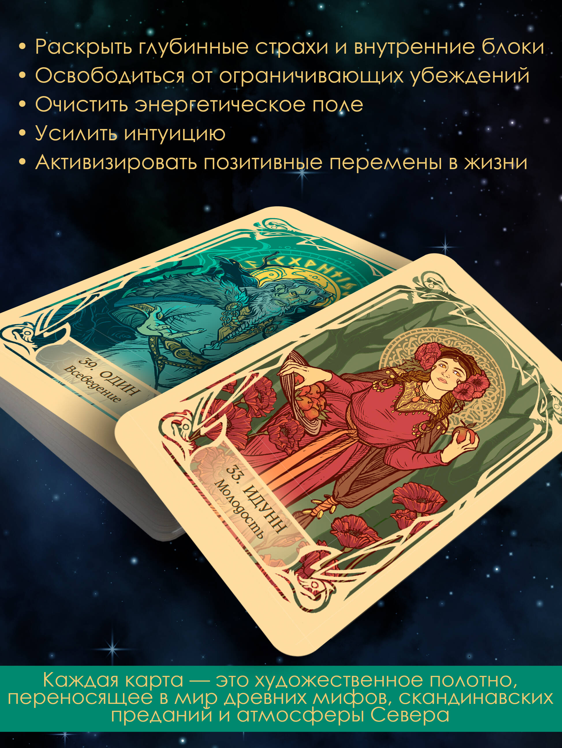 Руны - это язык Вселенной, древней и могущественной, и теперь вы можете говорить с ней и понимать ее послания. Каждая руна в колоде - проводник в мир скрытых Северных Сил, где мифы оживают, а магия становится частью вашего пути. Это не просто гадание - это живая связь с Мудростью предков, зашифрованной в символах. С помощью этого оракула вы сможете: • видеть глубже - понимать истинные причины событий и свои подсознательные блоки; • действовать мудрее - принимать решения, согласованные с вашей судьбой; • преодолевать препятствия - находить силу даже в сложных ситуациях; • открывать новые грани любви, карьеры и предназначения через призму древних архетипов. В сочетании с авторскими медитациями, ритуалами и духовными практиками этот оракул поможет приблизиться к внутреннему просветлению и Высшему Знанию. В комплекте 50 карт с образами рун и богов и подробное руководство с трактовками, посланиями и ритуалами.| Издательство | Издательство "АСТ" |