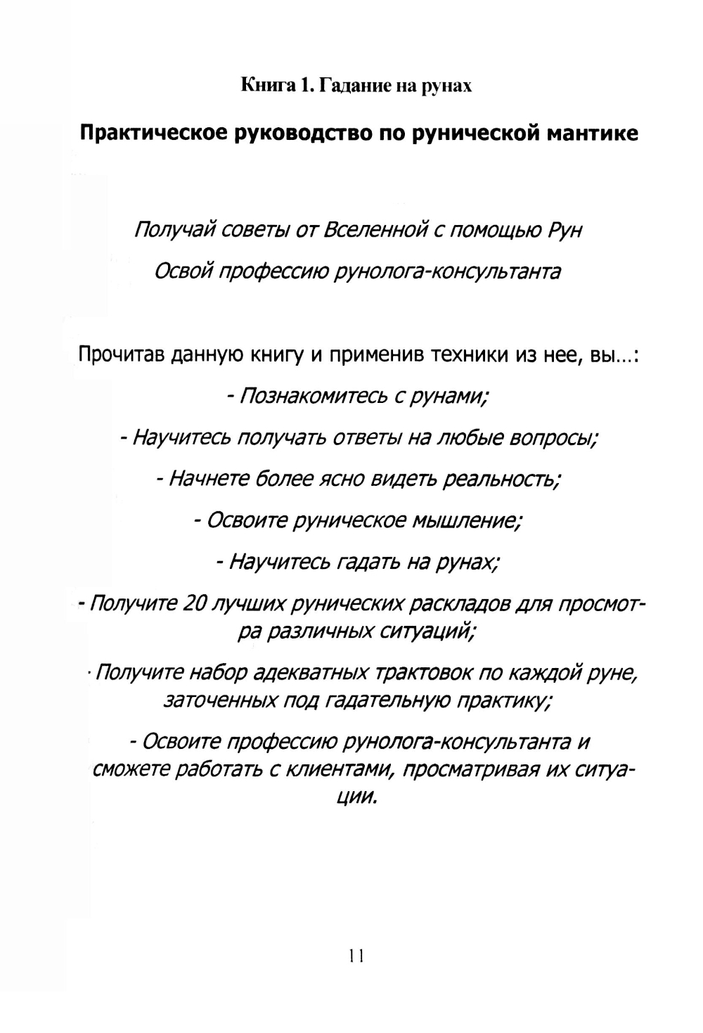 Цель книги - научить практически работать с рунами. В этом руководстве вы получите техническое описание работы при гадании (ман-тике) и магии. Здесь соединены две книги-руководства - «Гадание на рунах» и «Практическая руническая магия». В первой дается руководство по гаданию на рунах (мантика), лучшие расклады для просмотра ваших ситуаций, разобраны готовые примеры из практики и описан метод работы с клиентами. Во второй части даются практические основы рунической магии, чтобы вы сразу могли приступить к работе с рунами, ставить рунические ставы, делать обряды, активировать и запускать руны. Юрий Исламов - практикующий маг и рунолог, тренер рунического искусства. Автор книг «Рунический Гримуар», «Турборуны», «Рунические ставы», «Рунический Круг Силы», «Руническая магия» и других, ведущий трансформационного обучающего курса «Рунический Круг Силы».| Издательство | ИНГУЗ |