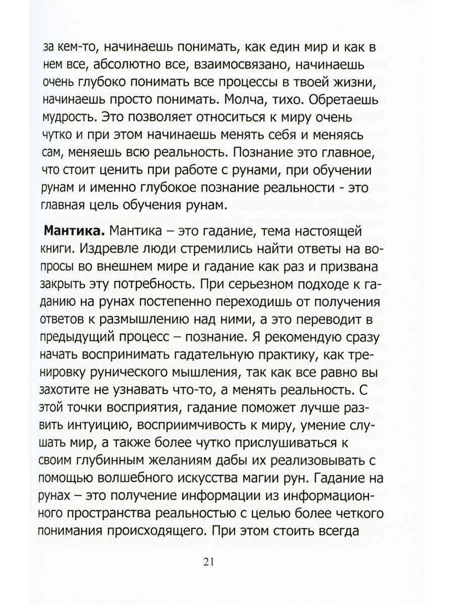 Цель книги - научить вас практически работать с рунами. В этом руководстве вы получите техническое описание работы при гадании (мантике) и магии. Здесь соединены две книги руководства - «Гадание на рунах» и «Практическая руническая магия». В первой дается руководство по гаданию на рунах (мантика), лучшие расклады для просмотра ваших ситуаций, разобраны готовые примеры из практики и описан метод работы с клиентами. Во второй части даются основы рунической магии, чтобы вы сразу могли приступить к работе с рунами, ставить рунические ставы, делать обряды, активировать и запускать руны. Юрий Исламов - практикующий маг и рунолог, тренер рунического искусства. Автор книг «Рунический Гримуар», «Турборуны», «Рунические Формулы», «Рунический Круг Силы» и обучающих курсов по Рунам и Магии.| Издательство | Атмосфера |