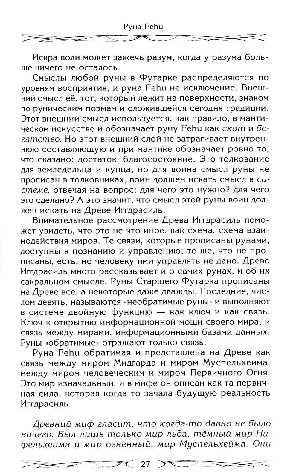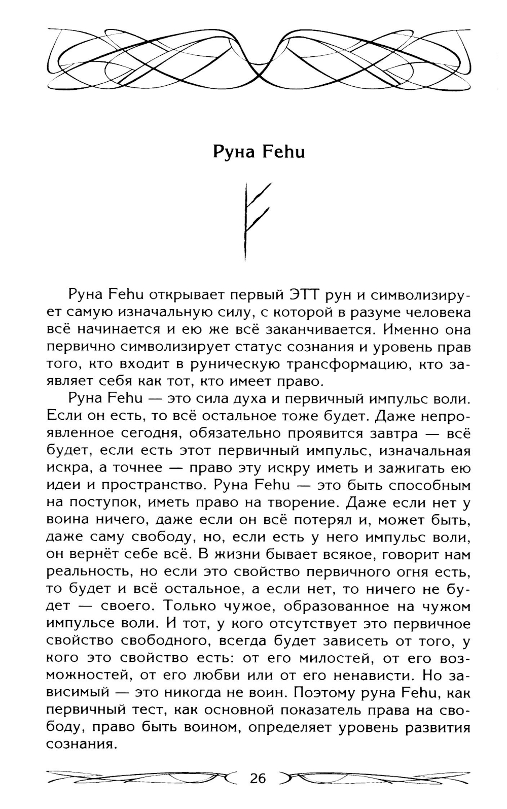 Руны - уникальный магический инструмент, через который можно постичь суть северной магии. Древние маги и волхвы, познавая руны, чувствуя через них все грани мироздания, учились изменять эти грани в соответствии с правилами этого мира. Не нарушая его, но исправляя его. Руны могут многое - и исправить, и навредить, это зависит от того, в чьих руках они находятся. Поэтому древние делили людей на касты и следили за тем, чтобы магические знания и инструменты не попали в руки недостойных. Только тот, кто способен быть честным, способен держать в руках руны и слышать их шёпот. Нижние касты - купцы и земледельцы - не способны почувствовать этот мир, как единый организм, но это может человек уровня воина, ведь в его сознании есть жёсткая установка, что ложь - постыдное занятие. Руны - оружие воинов, они не приемлют лжи и лукавства. Руны требуют полной самоотдачи и готовности пройти любые трансформации, которые превратят простого человека в воина. Воин - это не профессия, это состояние сознания, не зависящее от пола, возраста и происхождения. С ним либо рождаются, либо воспитывают в себе в течение жизни, становясь тем, кто не способен на ложь физически, потому что ложь нарушает законы мира. Предлагаем всем, кто готов встать на путь воина - добровольный путь трансформации и колоссального личностного роста, вместе с этой книгой поработать над собой, догрузить в себя недостающие алгоритмы умений и возможностей, раскрыть скрытое и получить недоступное. В реальной жизни на это уходят годы, руны же могут вывести вас на путь ускорения процессов развития разума, но взамен возьмут концентрированно эмоциями, временем и трудом…| Издательство | Центрполиграф |