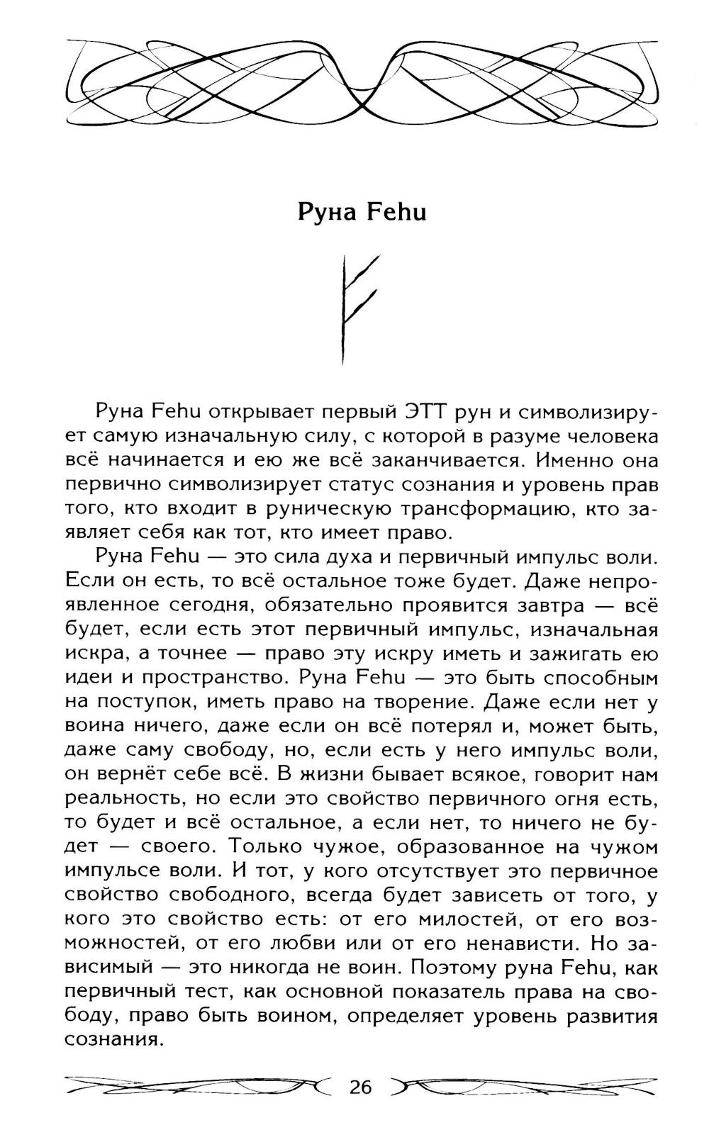 Руны - уникальный магический инструмент, через который можно постичь суть северной магии. Древние маги и волхвы, познавая руны, чувствуя через них все грани мироздания, учились изменять эти грани в соответствии с правилами этого мира. Не нарушая его, но исправляя его. Руны могут многое - и исправить, и навредить, это зависит от того, в чьих руках они находятся. Поэтому древние делили людей на касты и следили за тем, чтобы магические знания и инструменты не попали в руки недостойных. Только тот, кто способен быть честным, способен держать в руках руны и слышать их шёпот. Нижние касты - купцы и земледельцы - не способны почувствовать этот мир, как единый организм, но это может человек уровня воина, ведь в его сознании есть жёсткая установка, что ложь - постыдное занятие. Руны - оружие воинов, они не приемлют лжи и лукавства. Руны требуют полной самоотдачи и готовности пройти любые трансформации, которые превратят простого человека в воина. Воин - это не профессия, это состояние сознания, не зависящее от пола, возраста и происхождения. С ним либо рождаются, либо воспитывают в себе в течение жизни, становясь тем, кто не способен на ложь физически, потому что ложь нарушает законы мира. Предлагаем всем, кто готов встать на путь воина - добровольный путь трансформации и колоссального личностного роста, вместе с этой книгой поработать над собой, догрузить в себя недостающие алгоритмы умений и возможностей, раскрыть скрытое и получить недоступное. В реальной жизни на это уходят годы, руны же могут вывести вас на путь ускорения процессов развития разума, но взамен возьмут концентрированно эмоциями, временем и трудом…| Издательство | Центрполиграф |