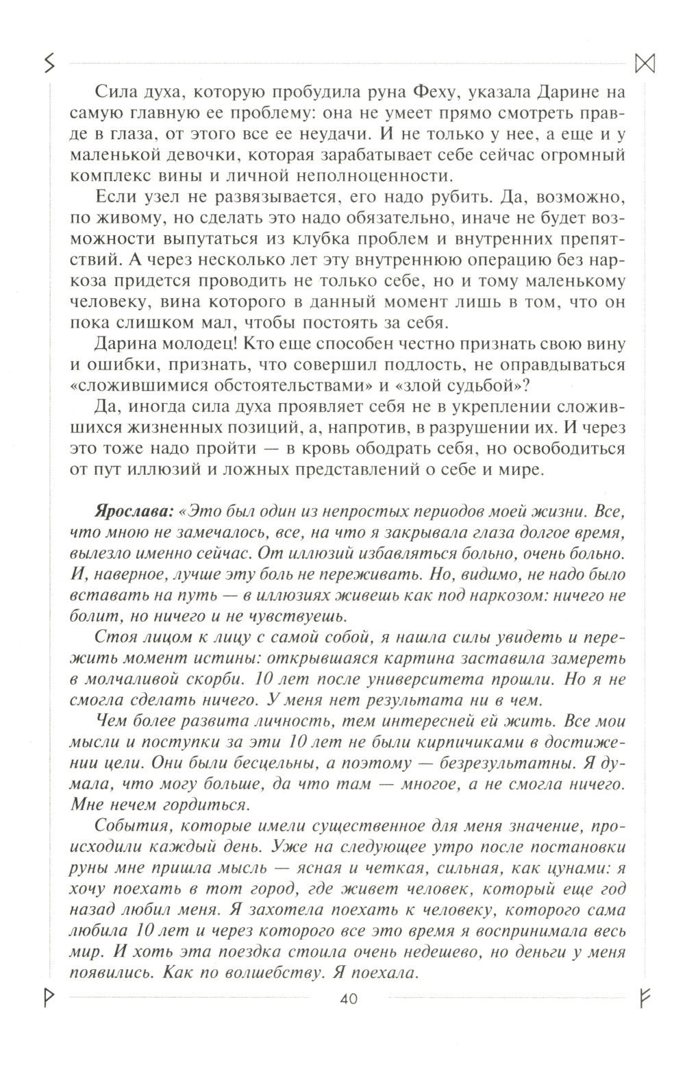 Руны - это магические символы, которыми пользовались люди в дохристианскую эпоху. Люди, которые прикасаются к рунам, перестают быть обычными людьми. Методика, на которой построена эта книга, дает возможность использовать руны для изменения, прежде всего, своего внутреннего мира - расширения сознания до уровня полного понимания событий и управления ими. Это уровень магии дает колоссальные возможности. Эта книга - живая. Она построена на реальных переживаниях реальных людей, которые изучали руны. Эти люди изменили себя, переписали свою судьбу, изменили судьбу своих детей, и на страницах книги они рассказывают об этом. Следуйте изложенной методике - и вы научитесь мастерству, откроете для себя возможности и мощь древнего магического инструмента. Имя ему - руны.| Издательство | Центрполиграф |