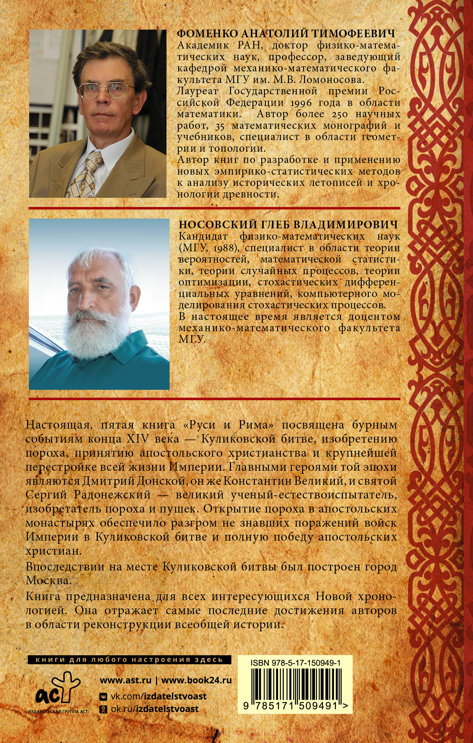 - Продолжение проекта «Новая хронология» - альтернативного взгляда на скалигеровскую версию истории. - Пятая книга цикла «Русь и Рим» - эпоха конца XIV века. - Книга будет интересна всем, кто когда-либо сомневался в правдивости исторических летописей. - Реконструкция исторических событий подается с практичной субъективной авторской позиции и будет понятна и близка даже неподготовленному читателю. - Книга полновесно и понятно отражает самые последние достижения авторов в области реконструкции всеобщей истории.| Издательство | ИЗДАТЕЛЬСТВО "АСТ" |