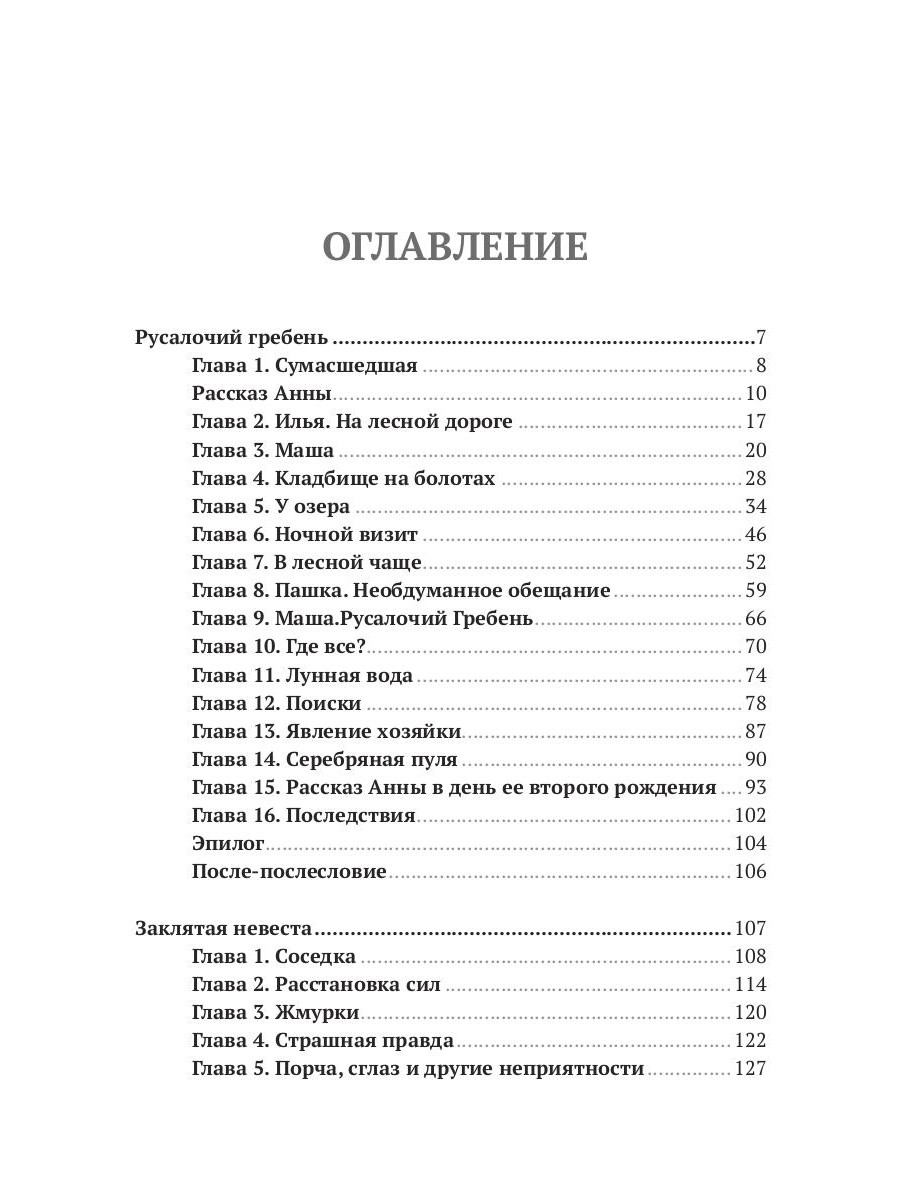 Русалочий гребень. Русалии - неделя накануне Ивана Купалы - время, когда русалки выходят из воды и разгуливают среди людей. Если вы собираетесь поехать в глухую деревеньку на берегу озера, старайтесь не бродить по ночам в окрестностях, избегайте болот и старого кладбища. И тщательно выбирайте попутчиков. Будьте осторожны, иначе коварные русалки сыграют с вами в свою опасную игру.