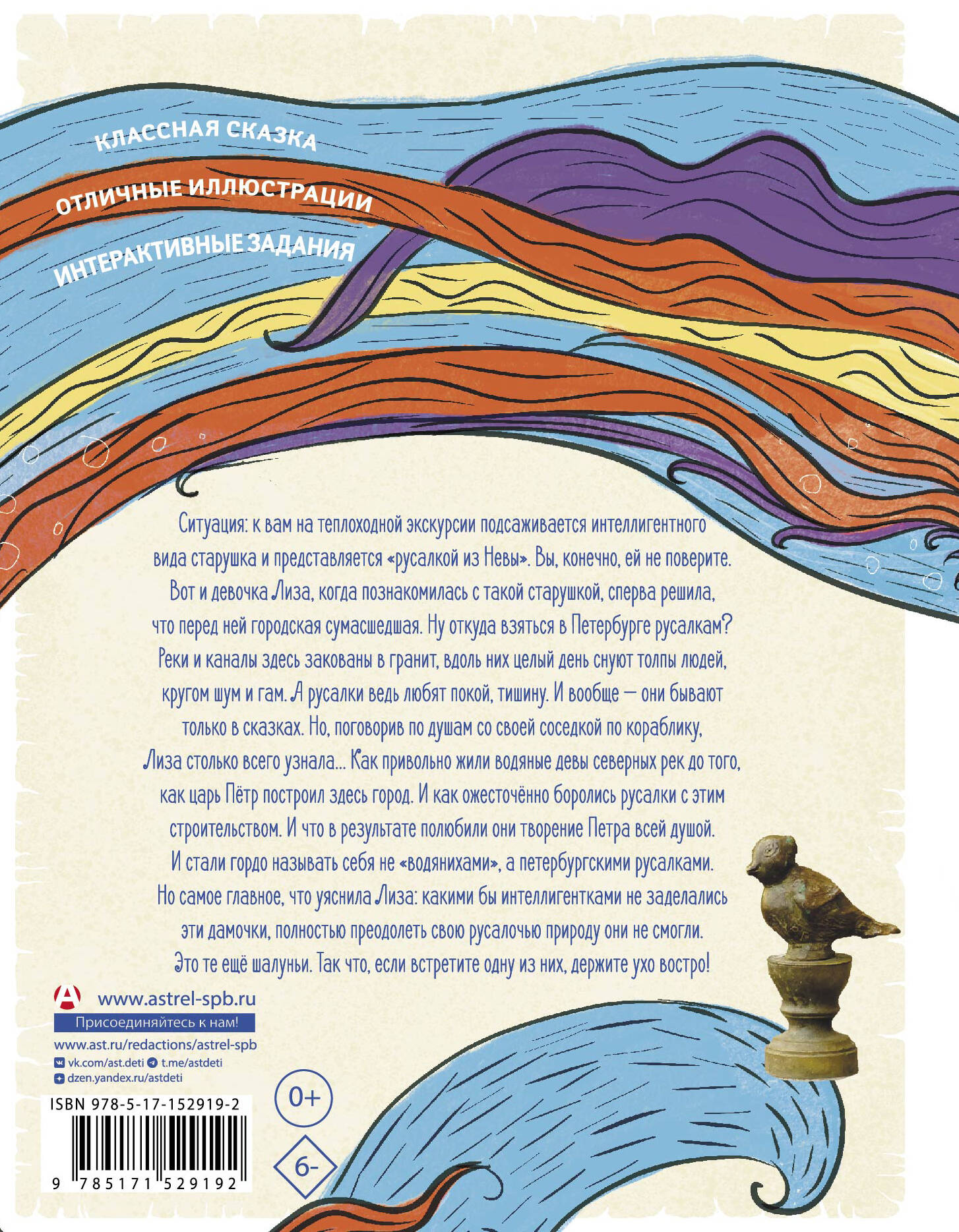 Познавательная интерактивная книга-сувенир в увлекательной игровой форме познакомит маленьких читателей с историей основания Санкт-Петербурга. Вместе с настоящей русалкой вы совершите невероятное путешествие по рекам и каналам Северной Венеции и не только узнаете много нового о Петербурге, но и выясните, где живут и чем занимаются современные русалки, Итак, вперёд, навстречу приключениям (и новым знаниям)!| Издательство | Издательство "АСТ" |