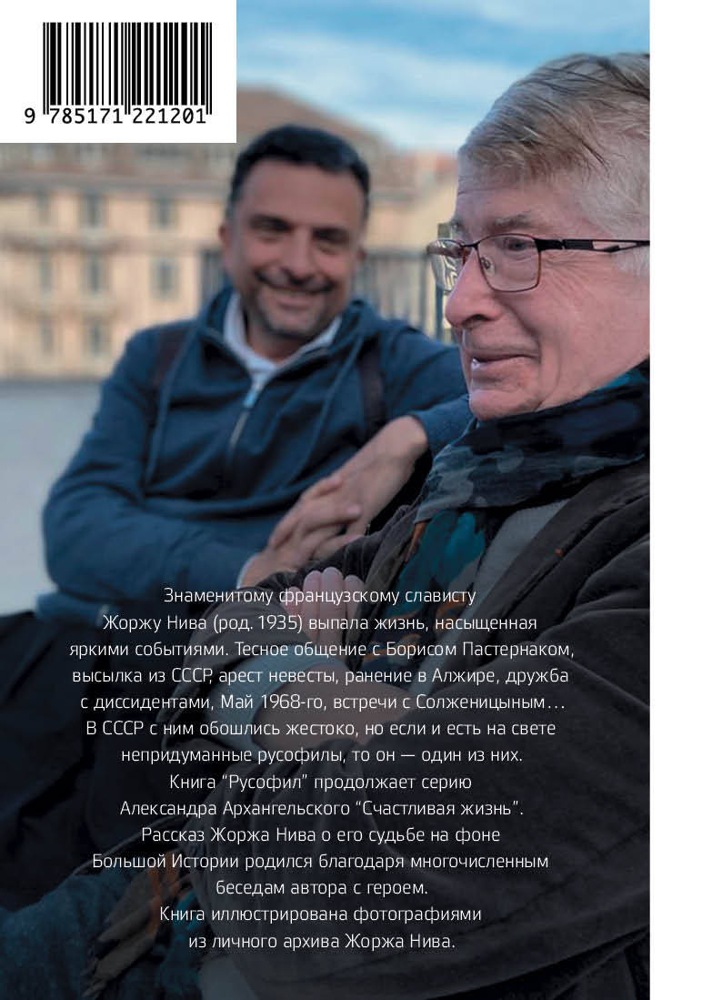 Знаменитому французскому слависту Жоржу Нива (род. 1935) выпала жизнь, насыщенная яркими событиями. Тесное общение с Борисом Пастернаком, высылка из СССР, арест невесты, ранение в Алжире, дружба с диссидентами, Май 1968-го, встречи с Солженицыным… В СССР с ним обошлись жестоко, но если и есть на свете непридуманные русофилы, то он - один из них. Книга "Русофил" продолжает серию Александра Архангельского "Счастливая жизнь". Рассказ Жоржа Нива о его судьбе на фоне Большой Истории родился благодаря многочисленным беседам автора с героем. Книга иллюстрирована фотографиями из личного архива Жоржа Нива.| Издательство | ИЗДАТЕЛЬСТВО "АСТ" |