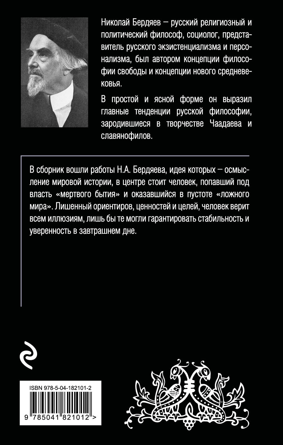 В простой и ясной форме Николай Бердяев выразил главные тенденции русской философии, зародившиеся в творчестве Чаадаева и славянофилов. В сборник вошли работы Н.А. Бердяева, идея которых - осмысление мировой истории, в центре стоит человек, попавший под власть "мертвого бытия" и оказавшийся в пустоте "ложного мира".| Издательство | ООО "Издательство "Эксмо" |