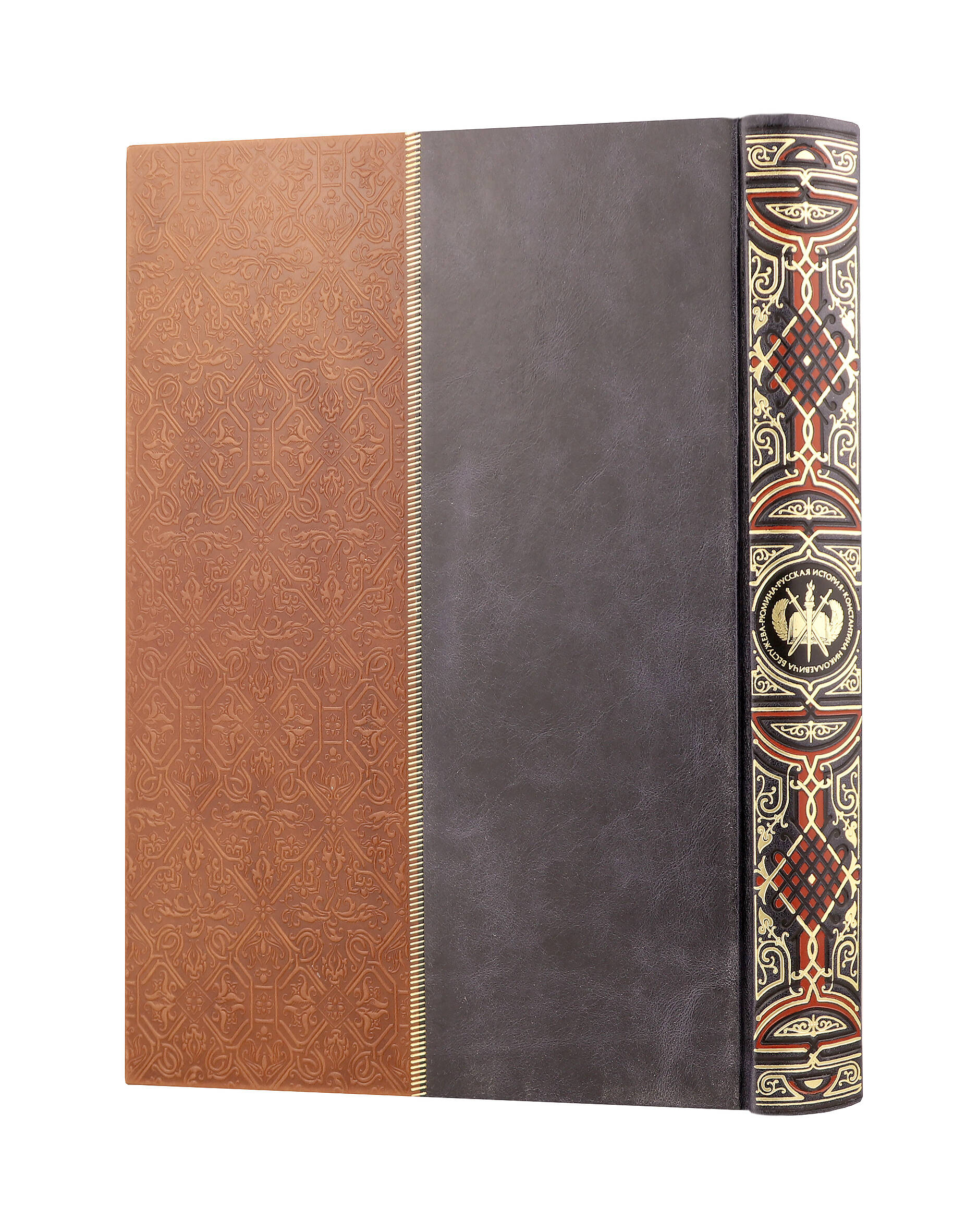 Русская история К.Н. Бестужева-Рюмина. Книга в коллекционном кожаном инкрустированном переплете ручной работы с окрашенным и золочёным обрезом