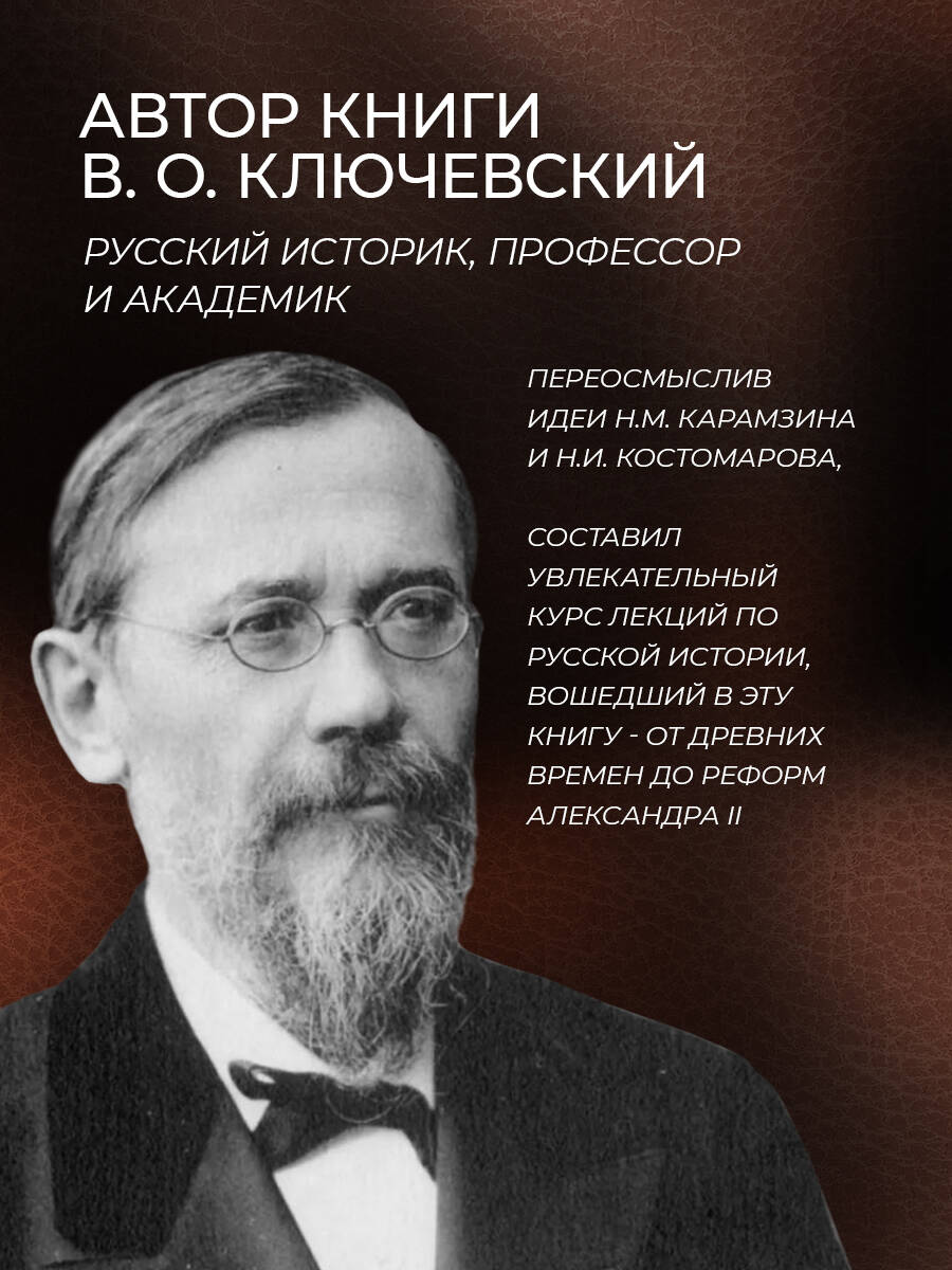 Аннотация: Русская история Василия Ключевского. Книга в коллекционном кожаном переплете ручной работы с многоцветным тиснением и окрашенным обрезом