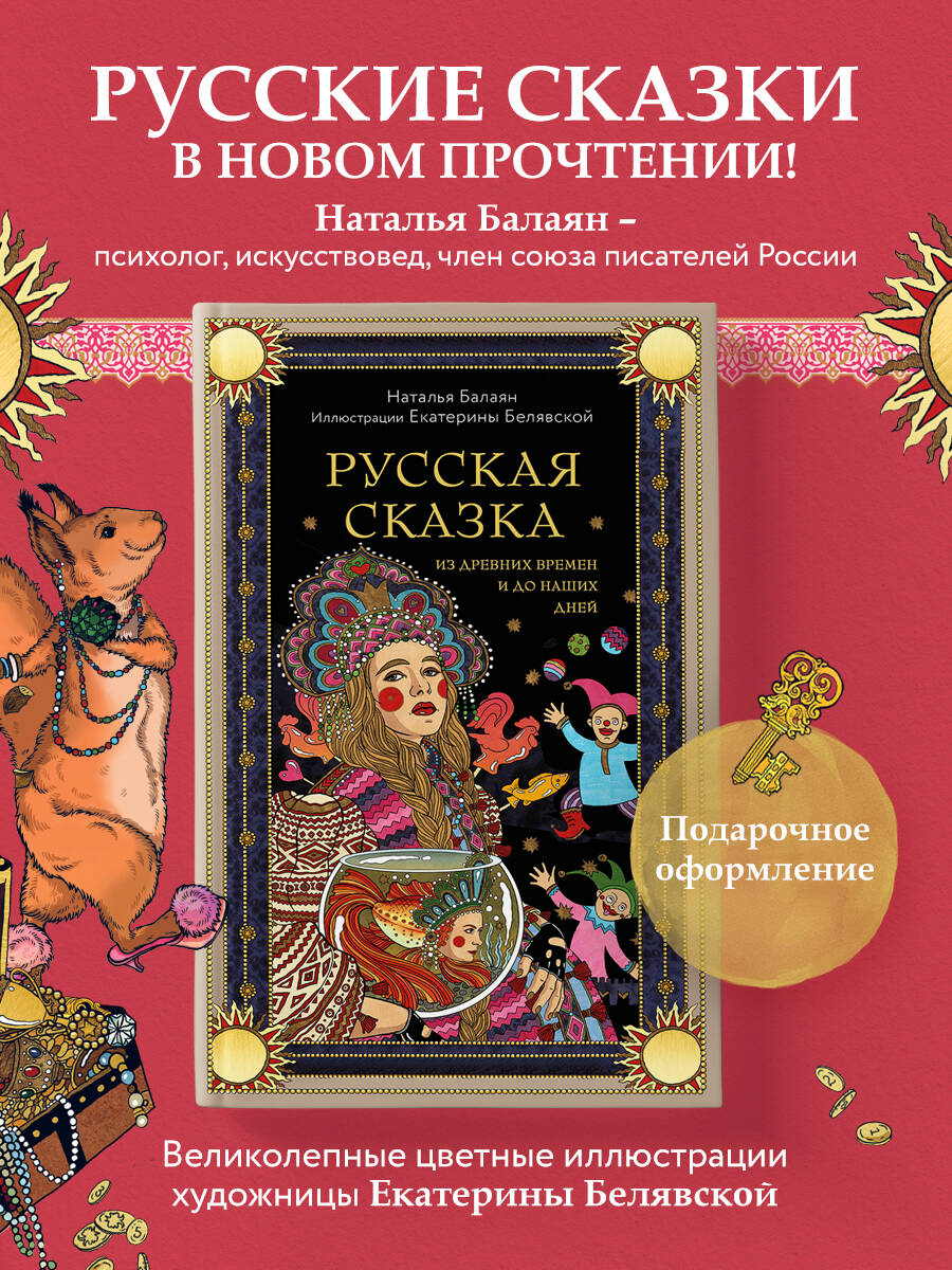 Русские сказки в новом прочтении - это уникальная книга со сказками и о сказках для детей и взрослых. Каждая сказка сопровождается глубокими комментариями, из которых вы узнаете все об архетипах древних героев русских сказок, об истории их рождения и трансформации, о культурных традициях славян, которые являются культурным кодом России. Читая сказки, вы вместе с детьми окунетесь в фантастический мир, и сами сказочные герои предстанут перед вами как отражение всех основных процессов человеческой жизни: взросление, выбор окружения и своего жизненного пути, собственных моральных ценностей, обретение самостоятельности через инициации, которые как раз так любят устраивать человеку мифические существа в сказаниях. Автор книги - психолог и член Союза писателей России Наталья Балаян. Книга в подарочном оформлении с прекрасными цветными иллюстрациями Екатерины Белявской.| Издательство | ООО "Издательство "Эксмо" |
