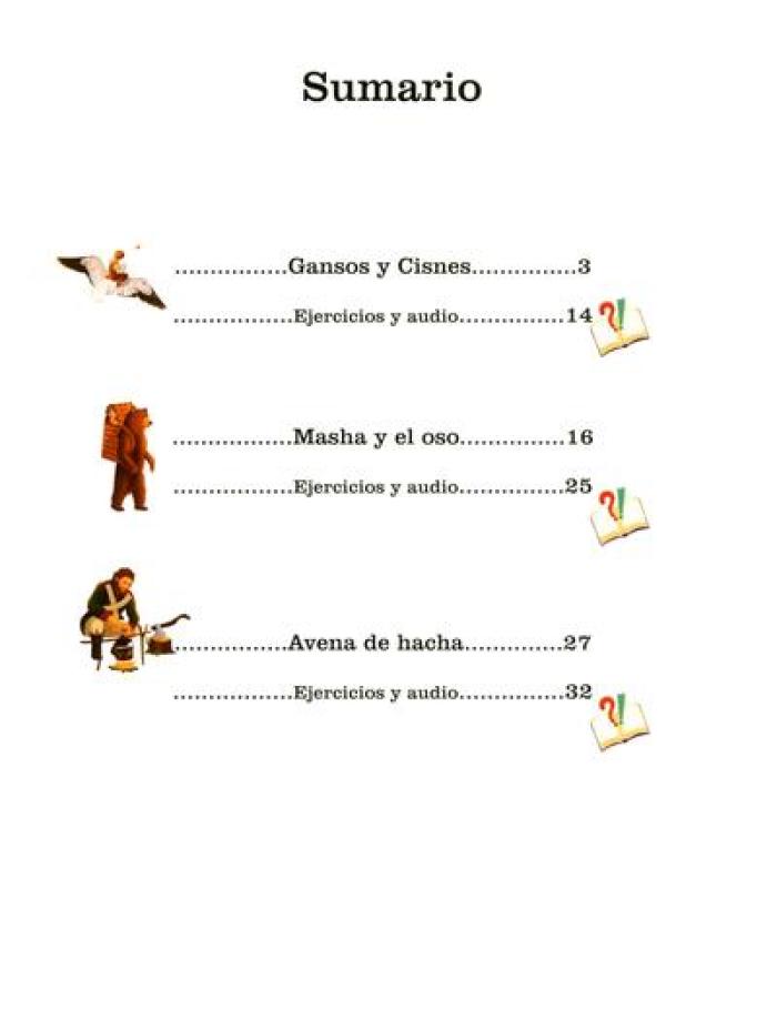 Аннотация: Русские народные сказки для изучающих испанский язык. Учебные материалы. Уровень А2-В1 (Гуси-Лебеди, Маша и медведь, Каша из топора)(кн.на испан.яз.)