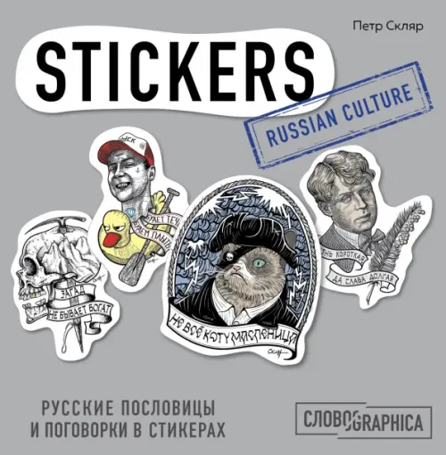 В стикербуке Петра Скляра с удивительной точностью сочетаются текстовый и художественный образы, скрывающиеся за русскими пословицами и поговорками.