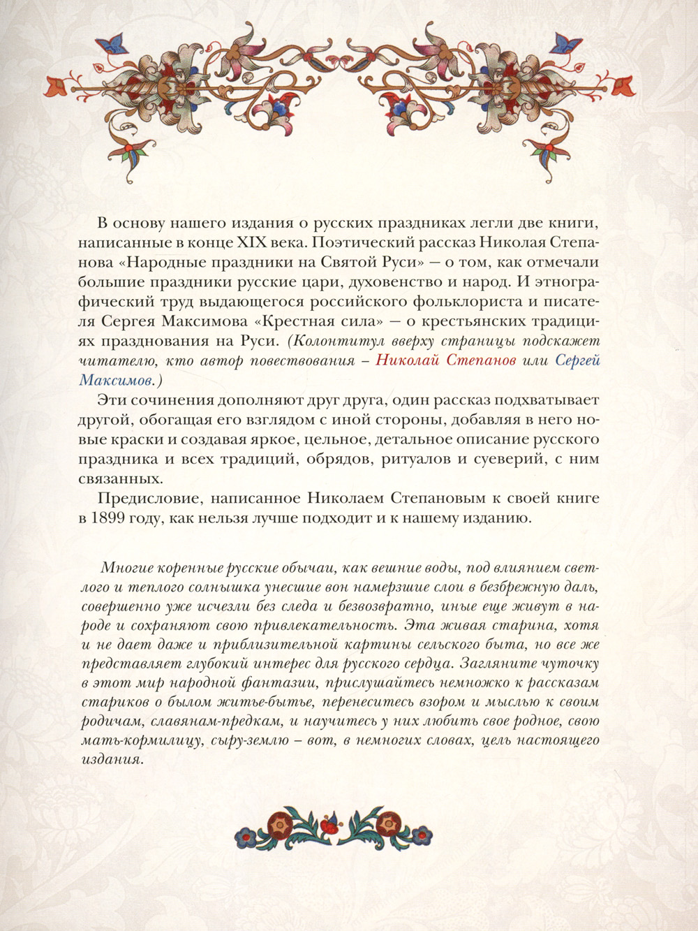 Самый полный путеводитель по традиционным русским праздникам: от тех, которые мы отмечаем до сих пор, до тех, что давно и незаслуженно забыты. В основу книги легли два труда конца XIX века: «Народные праздники на Святой Руси» Николая Степанова и «Нечистая, неведомая и крестная сила» Сергея Максимова. Две эти работы, впервые объединенные в одном издании, дают цельную и детальную картину вселенной русских праздников и связанных с ними традиций, обрядов и суеверий. От главных дат в русском календаре - Рождества, Масленицы, Пасхи, Троицы - до Пчелиного и Лошадиного дня, Кузьминок, Оспожинок и Семика. Издание иллюстрировано работами русских живописцев - Бориса Кустодиева, Карла Брюллова, Константина Маковского, Петра Суходольского, - а также редкими поздравительными открытками начала XX века.| Издательство | Просвещение-Союз |