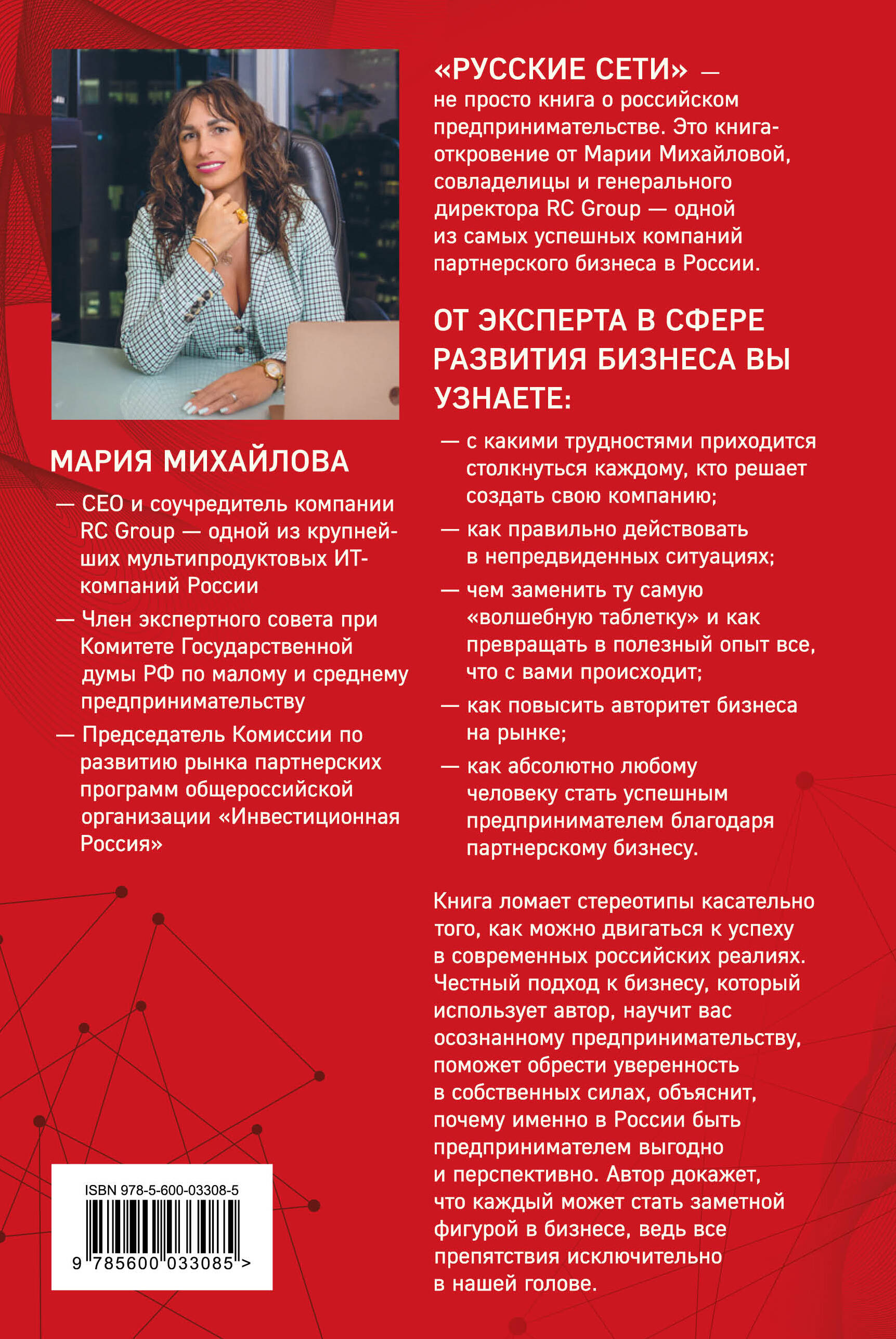 «Русские сети» - не просто книга о российском предпринимательстве. Это книга-откровение от Марии Михайловой, совладелицы и генерального директора RC Group - одной из самых успешных компаний партнерского бизнеса в России. От эксперта в сфере развития бизнеса вы узнаете: - с какими трудностями приходится столкнуться каждому, кто решает создать свою компанию; - как правильно действовать в непредвиденных ситуациях; - чем заменить ту самую «волшебную таблетку» и как превращать в полезный опыт все, что с вами происходит; - как повысить авторитет бизнеса на рынке; - как абсолютно любому человеку стать успешным предпринимателем благодаря партнерскому бизнесу. Книга ломает стереотипы касательно того, как можно двигаться к успеху в современных российских реалиях. Честный подход к бизнесу, который использует автор, научит вас осознанному предпринимательству, поможет обрести уверенность в собственных силах, объяснит, почему именно в России быть предпринимателем - выгодно и перспективно. Автор докажет, что каждый может стать заметной фигурой в бизнесе, ведь все препятствия исключительно в нашей голове.| Издательство | Эксмо |