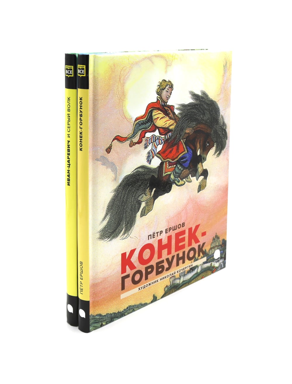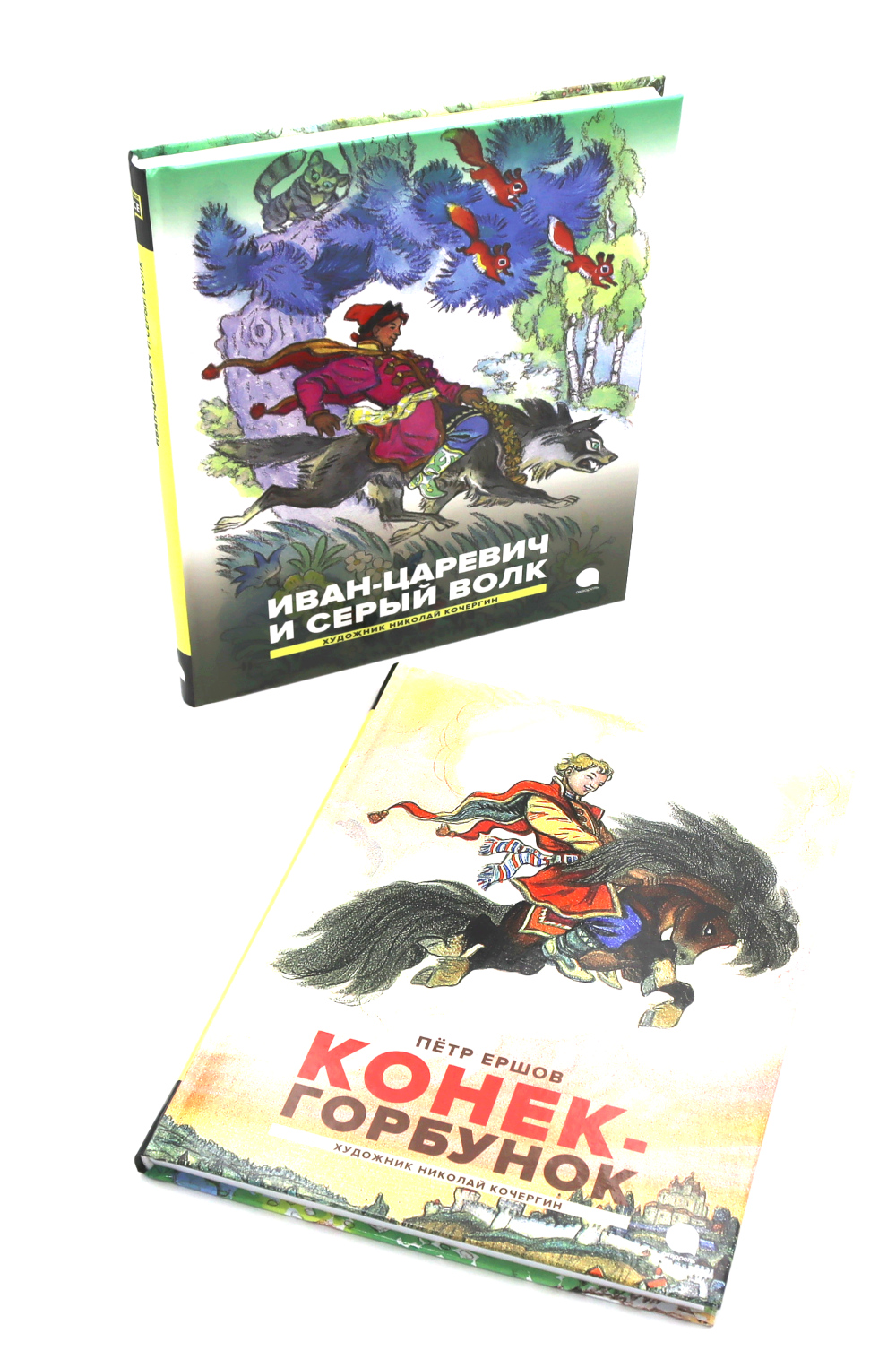 Лучшие сказки с восхитительными иллюстрациями Николая Кочергина. В комплект входят книги: «Иван-царевич и серый волк. Русские народные сказки» про волшебный мир, по которому можно путешествовать на обычной печке или быстром сером волке, где ночью по полям расхаживает ослепительная Жар-птица, а в избушке на курьих ножках в лесной глуши живёт самая настоящая Баба-яга; и «Конек-горбунок» о том, как Иван-дурак перехитрил жадного царя, добыл Жар-птицу, а потом женился на первой красавице. И как его верный друг, неказистый Конёк-горбунок, оказался дороже всех богатств в мире.| Издательство | Акварель |