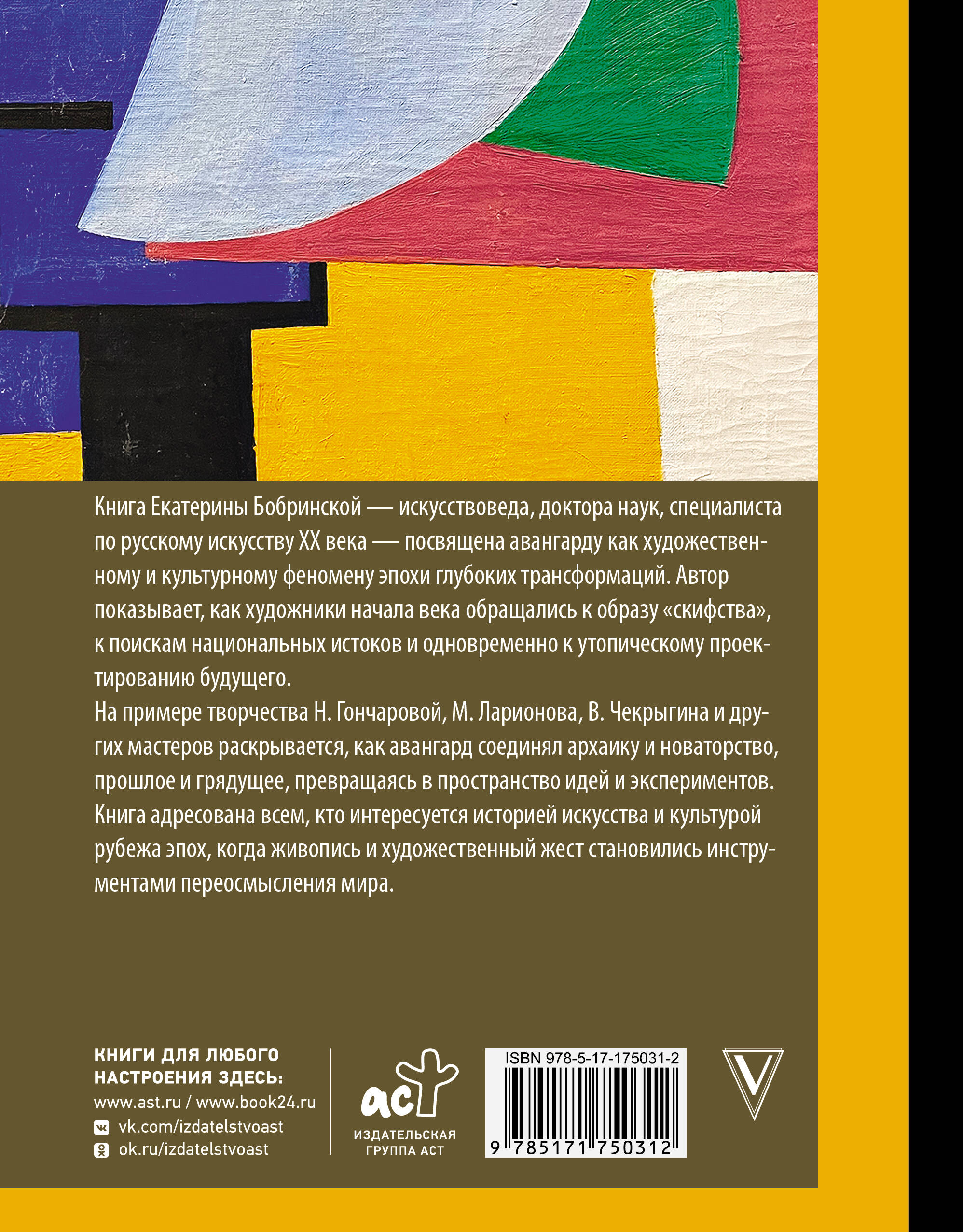 Книга Екатерины Бобринской - искусствоведа, доктора наук, специалиста по русскому искусству ХХ века - посвящена авангарду как художественному и культурному феномену эпохи глубоких трансформаций. Автор показывает, как художники начала века обращались к образу "скифства", к поискам национальных истоков и одновременно к утопическому проектированию будущего. На примере творчества Н. Гончаровой, М. Ларионова, В. Чекрыгина и других мастеров раскрывается, как авангард соединял архаику и новаторство, прошлое и грядущее, превращаясь в пространство идей и экспериментов. Книга адресована всем, кто интересуется историей искусства и культурой рубежа эпох, когда живопись и художественный жест становились инструментами переосмысления мира.| Издательство | Издательство "АСТ" |