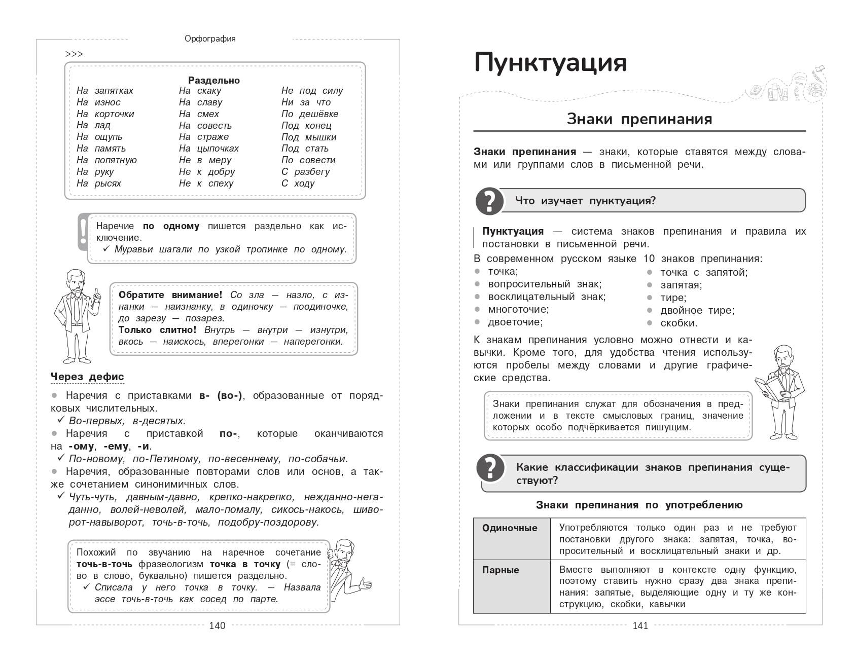Все темы школьного курса русского языка, представленные в форме «вопрос - ответ», делают настоящий справочник отличной альтернативой скучным учебным пособиям. Ёмкие ответы на 200 самых важных вопросов предмета в доступной форме расскажут необходимое. Структура книги не даст устать от чтения, а интонация диалога (вопрос - ответ) снимет напряжённость в ходе обучения. Это пособие поможет акцентировать внимание на самом главном, быстро находить ответы на вопросы учителя, успешно выполнять домашние задания, эффективно готовиться к контрольным работам и экзаменам. Издание станет настоящей палочкой-выручалочкой для учеников 5-11 классов, а также принесёт пользу учителям, репетиторам и всем, кто интересуется русским языком!| Издательство | ООО "Издательство "Эксмо" |