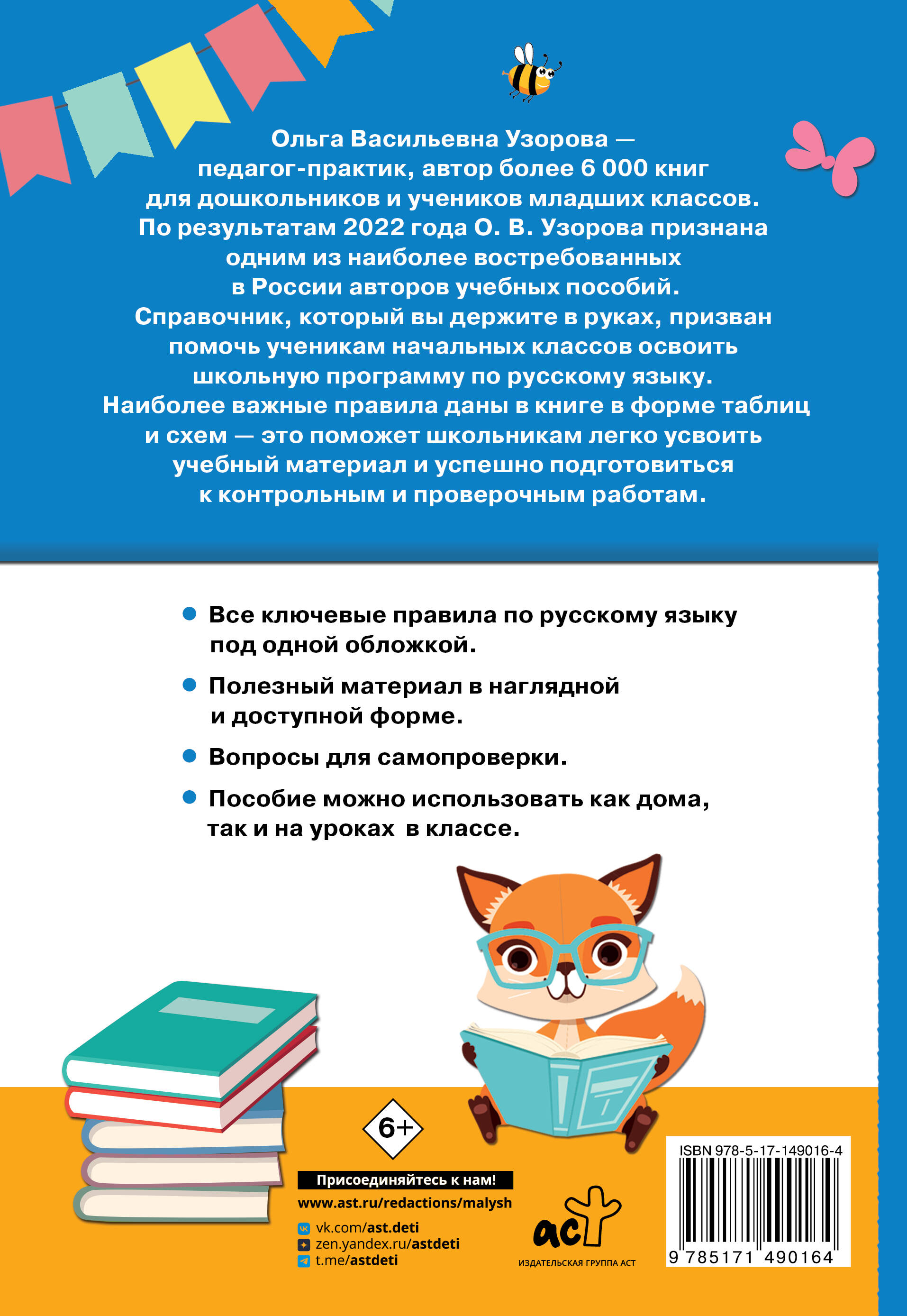 «Русский язык. 1−4 классы» - это пособие по русскому языку для учащихся начальной школы, основанное на авторской методике О. В. Узоровой. Все правила по русскому языку даны в книге в виде цветных схем и таблиц. Учебный материал, представленный в табличной форме, нагляден и прост для понимания, а цветовое оформление облегчает запоминание информации и делает процесс обучения эффективным.| Издательство | ИЗДАТЕЛЬСТВО "АСТ" |