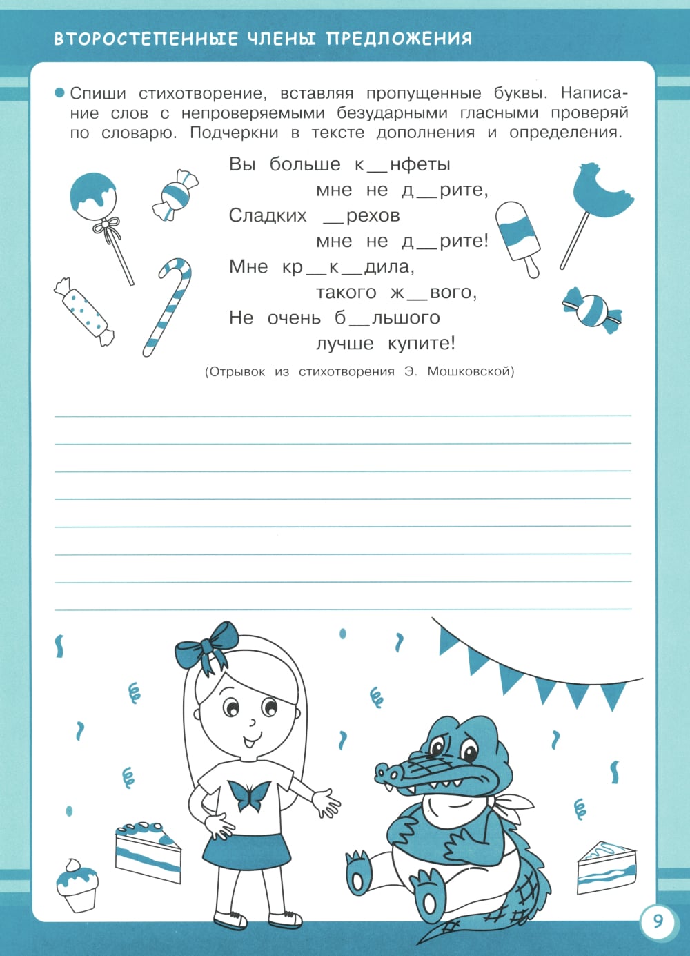 Эта рабочая тетрадь по русскому языку адресована учащимся четвёртого класса. Она соответствует учебной программе и направлена на закрепление знаний, полученных на уроках русского языка. Книга предназначена для дополнительных занятий русским языком дома и на факультативных занятиях в школе. В пособии представлены задания, развивающие разговорные навыки, расширяющие активный словарь, задания на усвоение правил орфографии и пунктуации русского языка, задания на закрепление навыков звуко-буквенного анализа слов, задания на освоение морфемного состава слов, задания на изучение основ морфологии, а также ряд творческих заданий.| Издательство | Стрекоза |