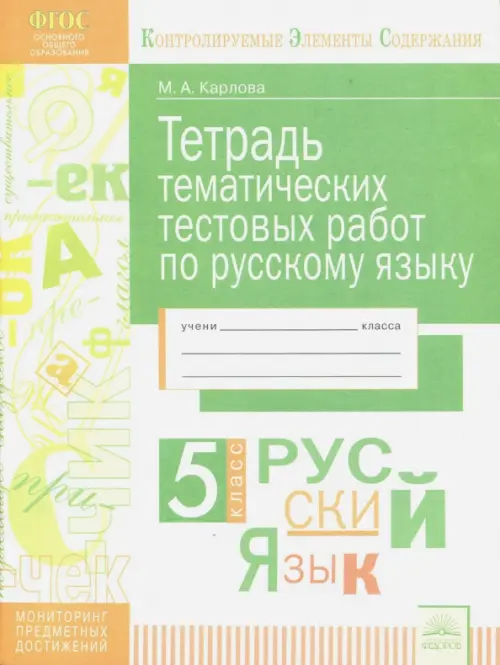 Тетрадь тематических тестовых работ предназначена для мониторинга предметных достижений пятиклассников по русскому языку и является частью серии тетрадей, в которую входят аналогичные издания по другим предметам.